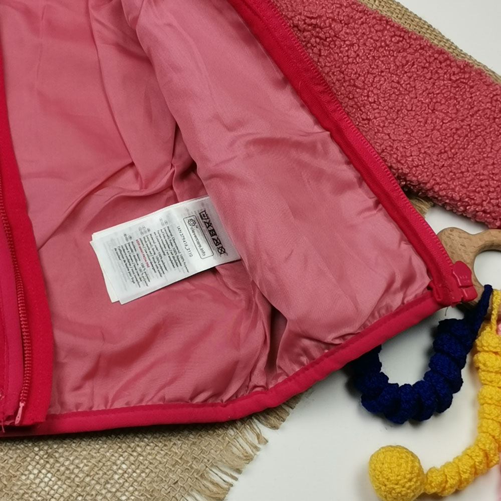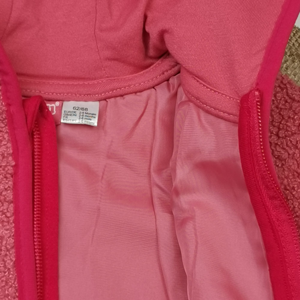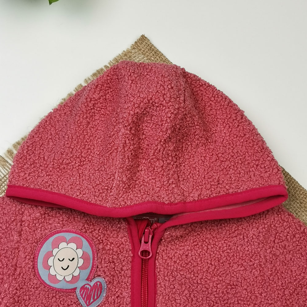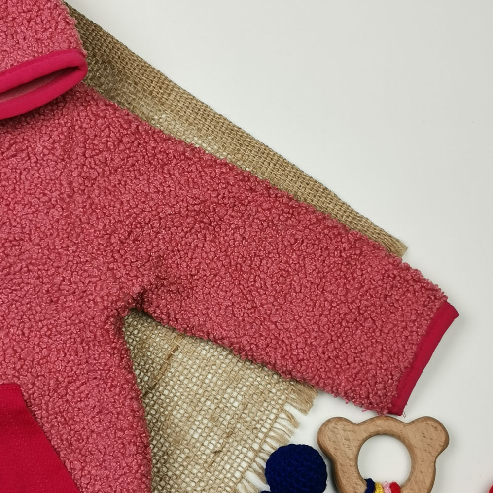 سویشرت نوزادی دخترانه آستین بلند برند لوپیلو طرح گل و قلب آستر دار و تکه دوزی شده سرخابی رنگ – 2 تا 6 ماه