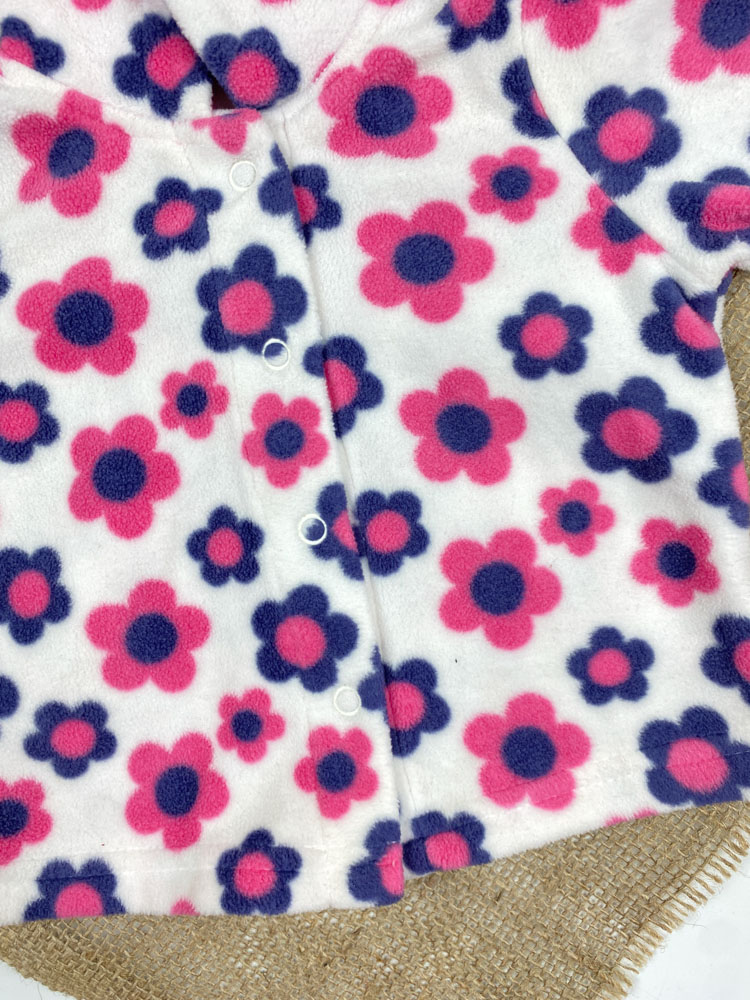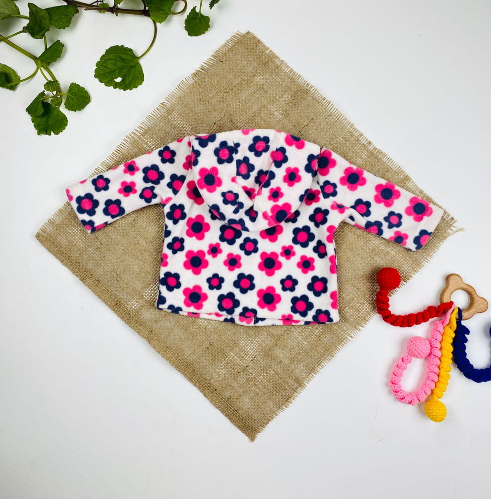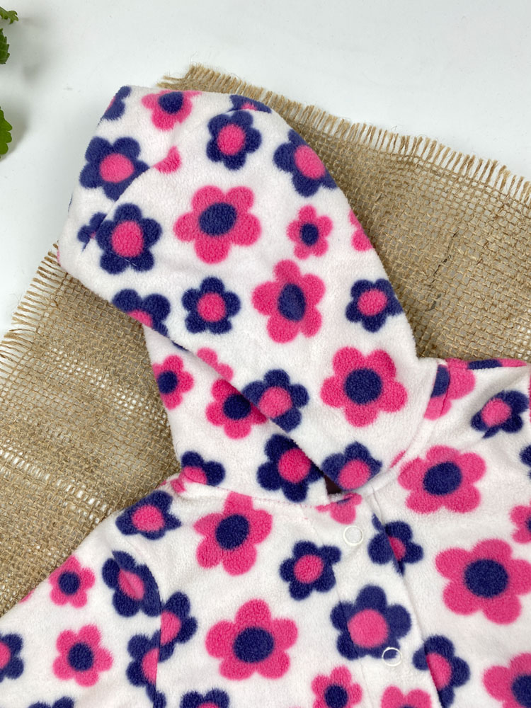 سویشرت نوزادی دخترانه آستین بلند طرح گل گلی کلاه دار جلو دکمه ای سفید رنگ – 0 تا 3 ماه