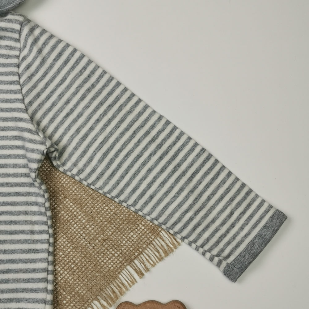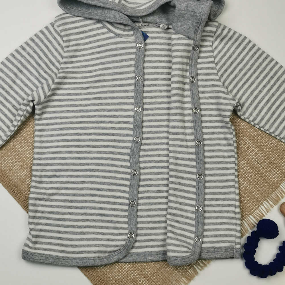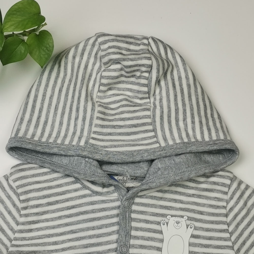 سویشرت نوزادی پسرانه آستین بلند برند lupilu طرح راه راه کلاه دار طوسی رنگ – 12 تا 24 ماه