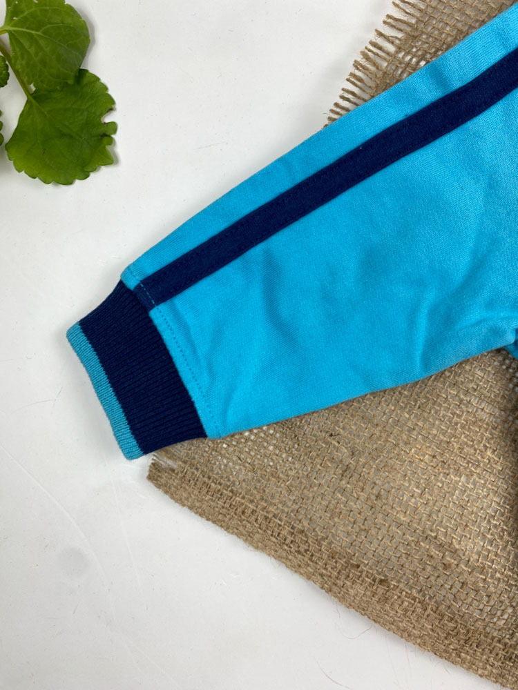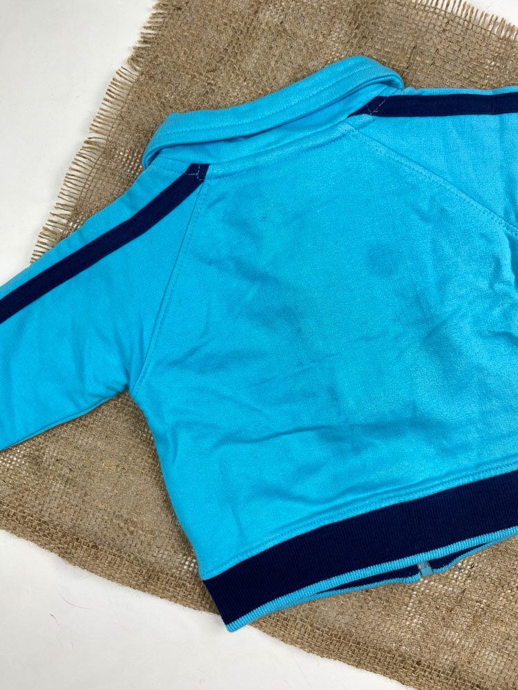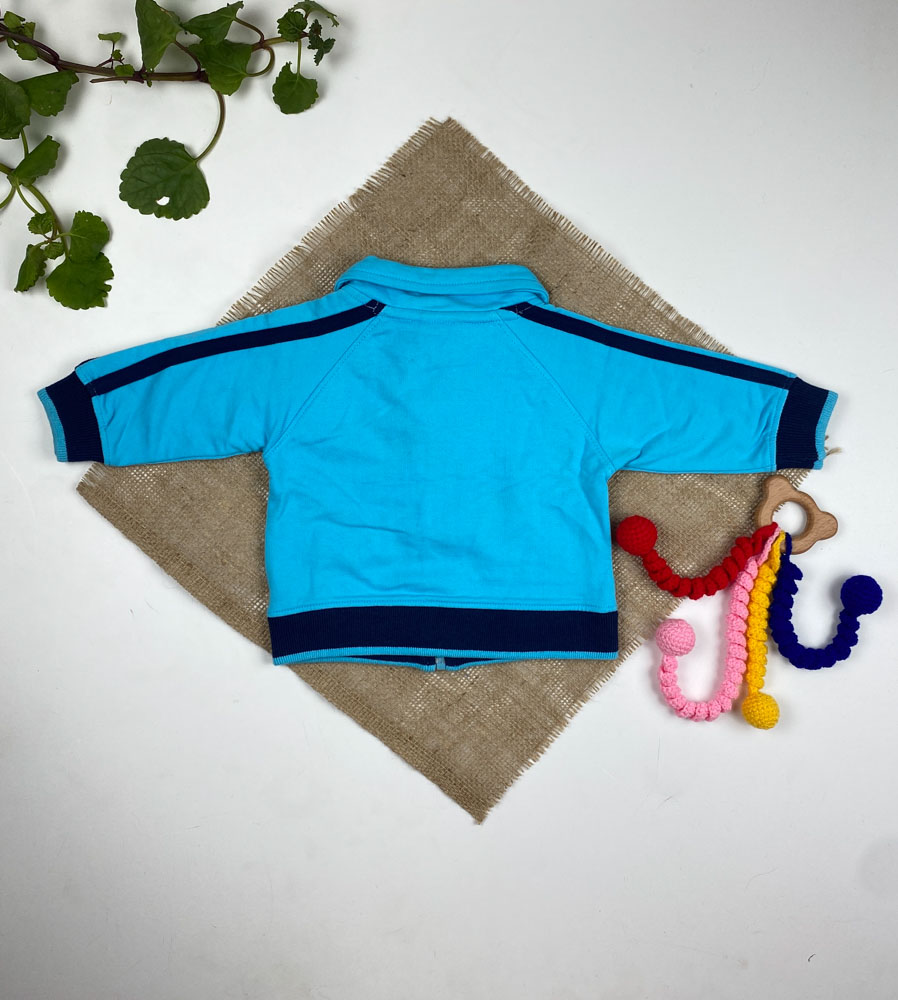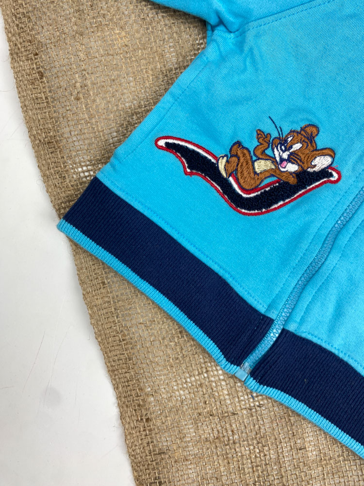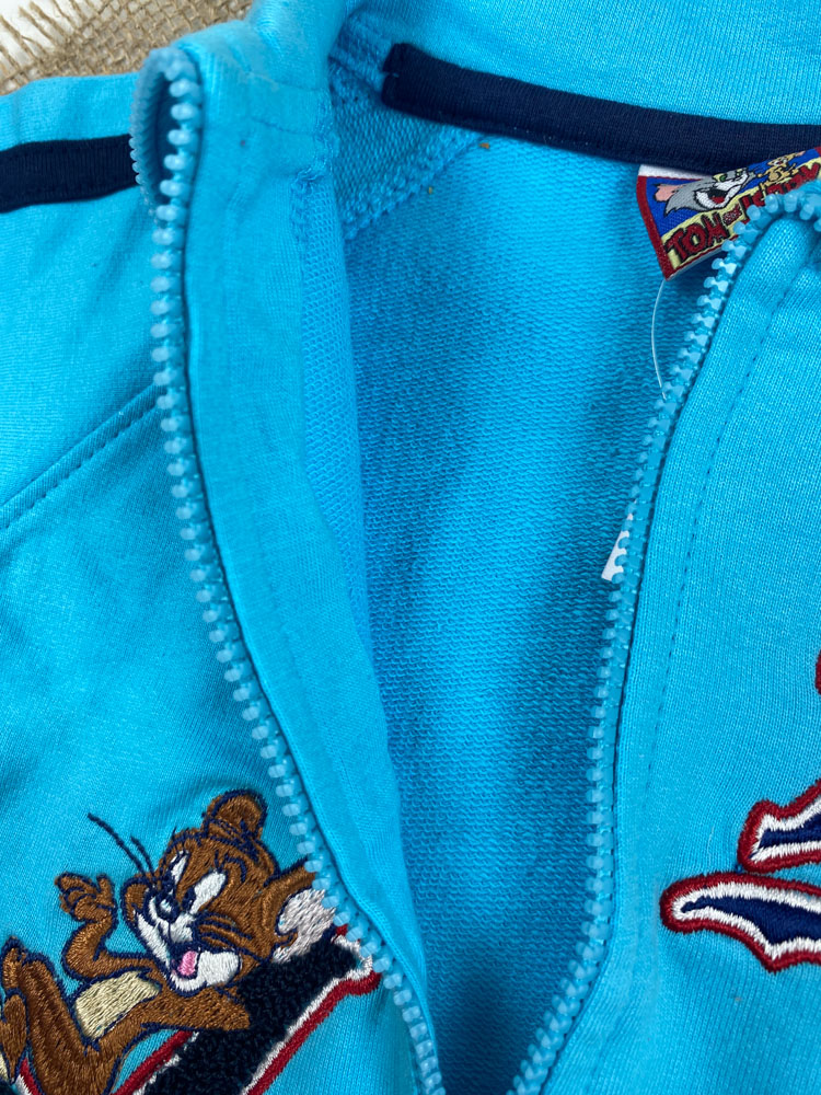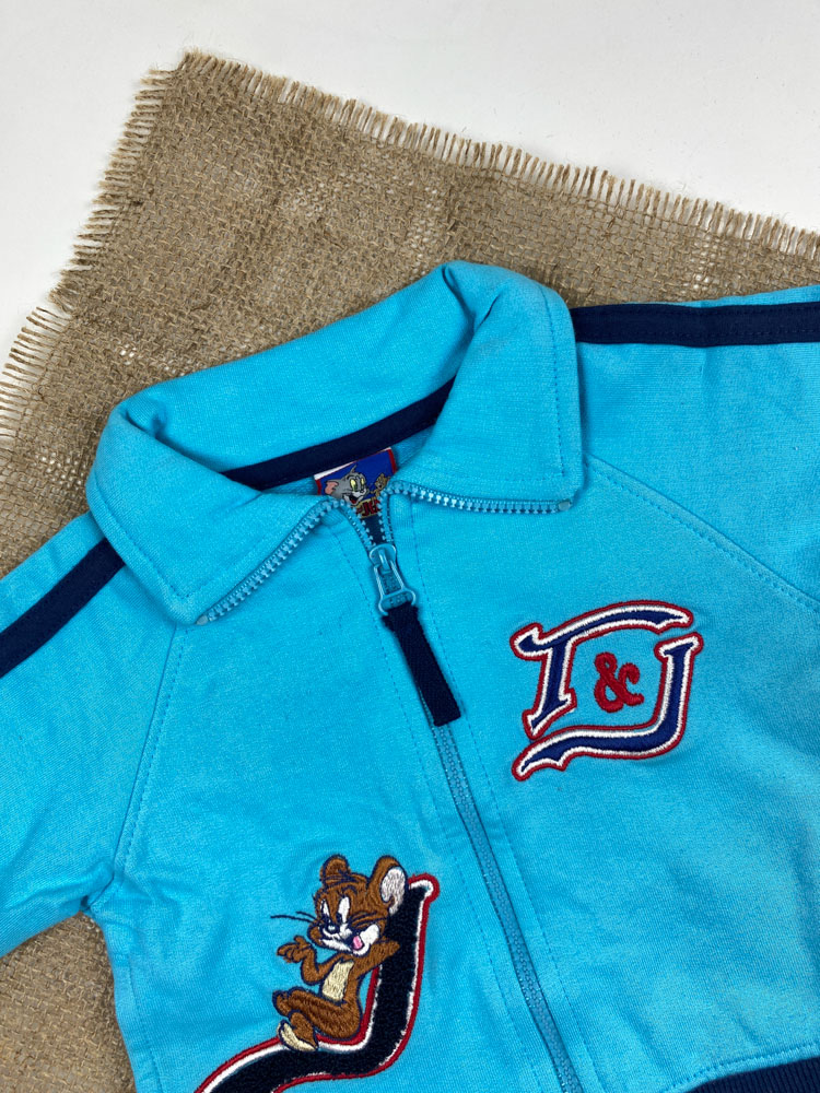 سویشرت نوزادی پسرانه آستین بلند طرح تام و جری جلو زیپی یقه دار آبی کمرنگ – 3 تا 6 ماه