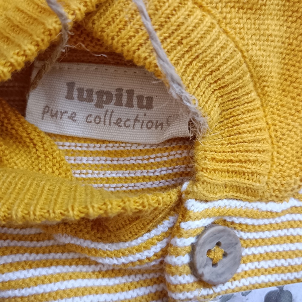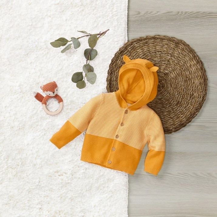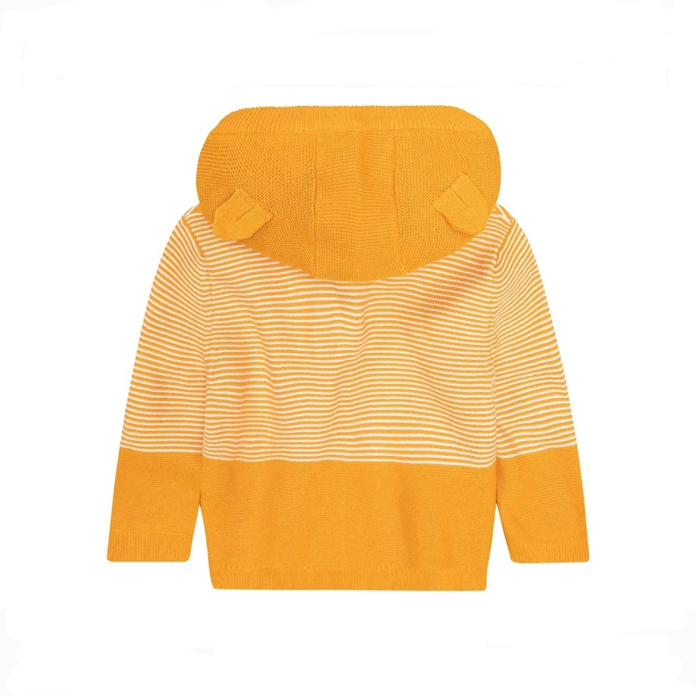 سویشرت کلاه دار بافت لوپیلو طرح زرد راه راه