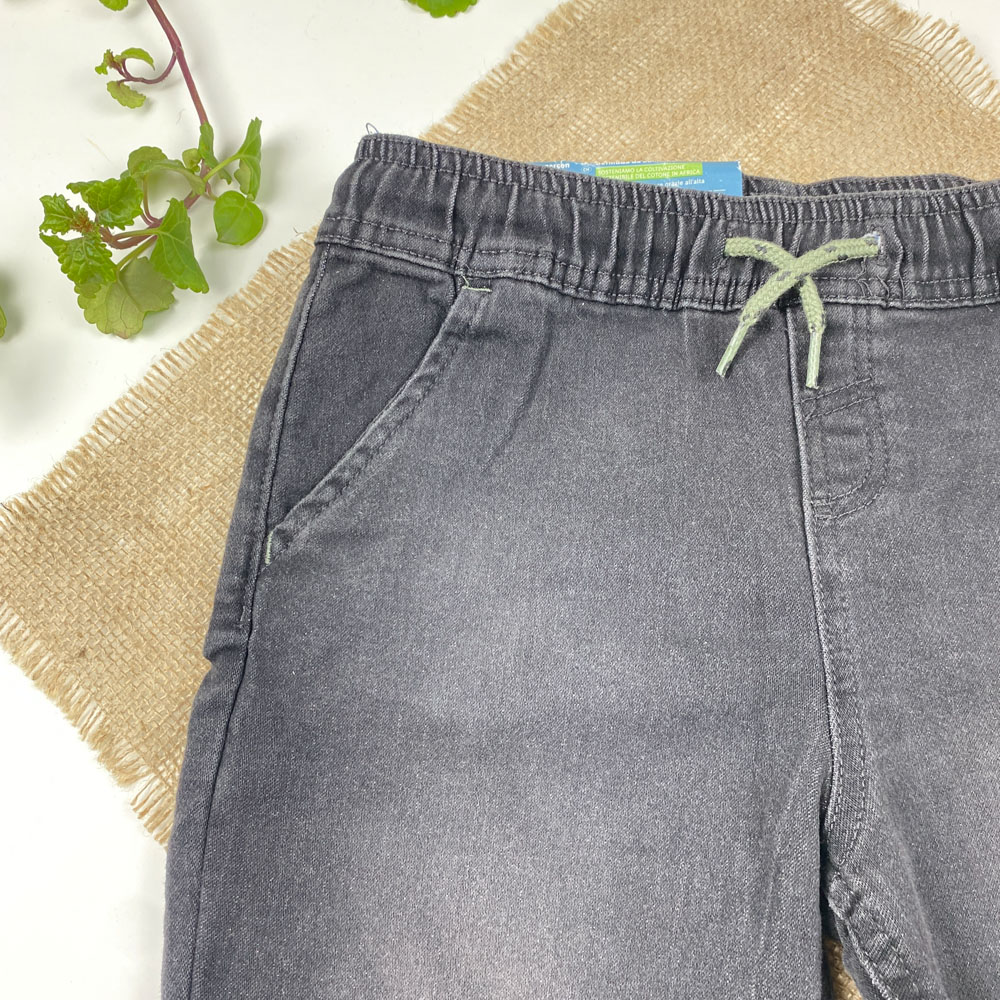 شلوارک برند لوپیلو طرح لبه تا شده کمرکش بندک سبز ذغالی رنگ