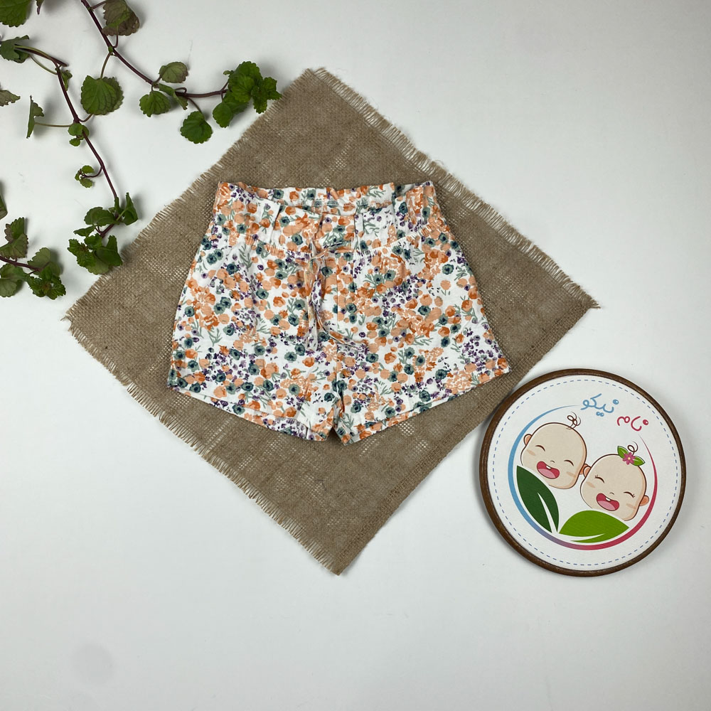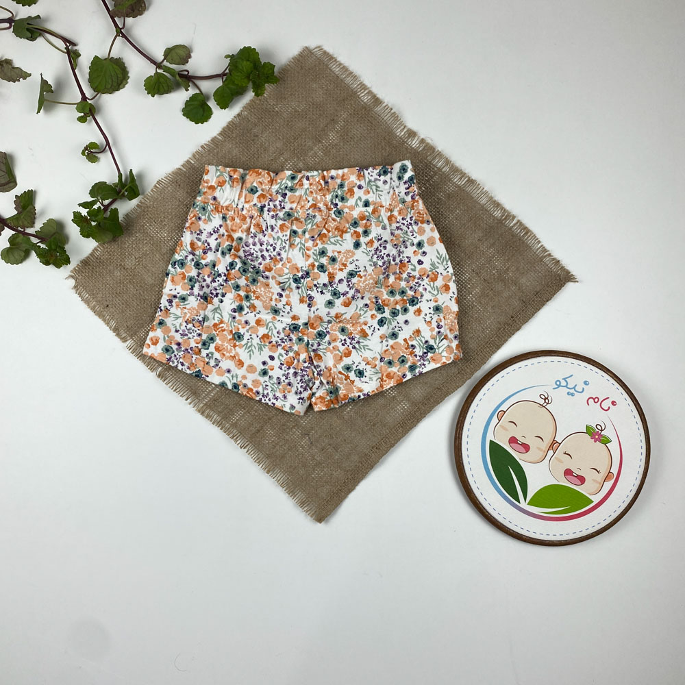 شلوارک دخترانه برند لوپیلو طرح گل گلی کمر چین دار سفید رنگ – 2 تا 4 سال