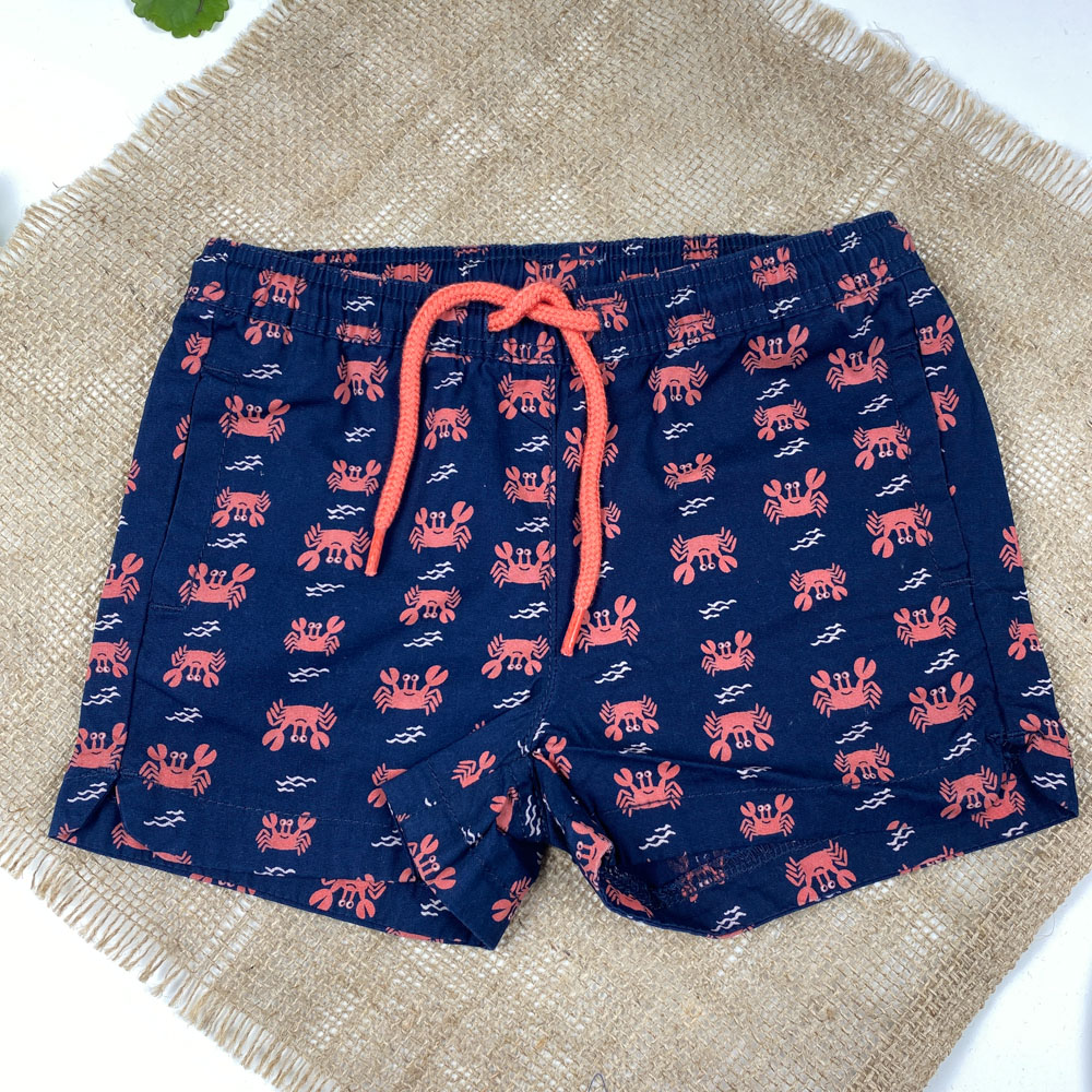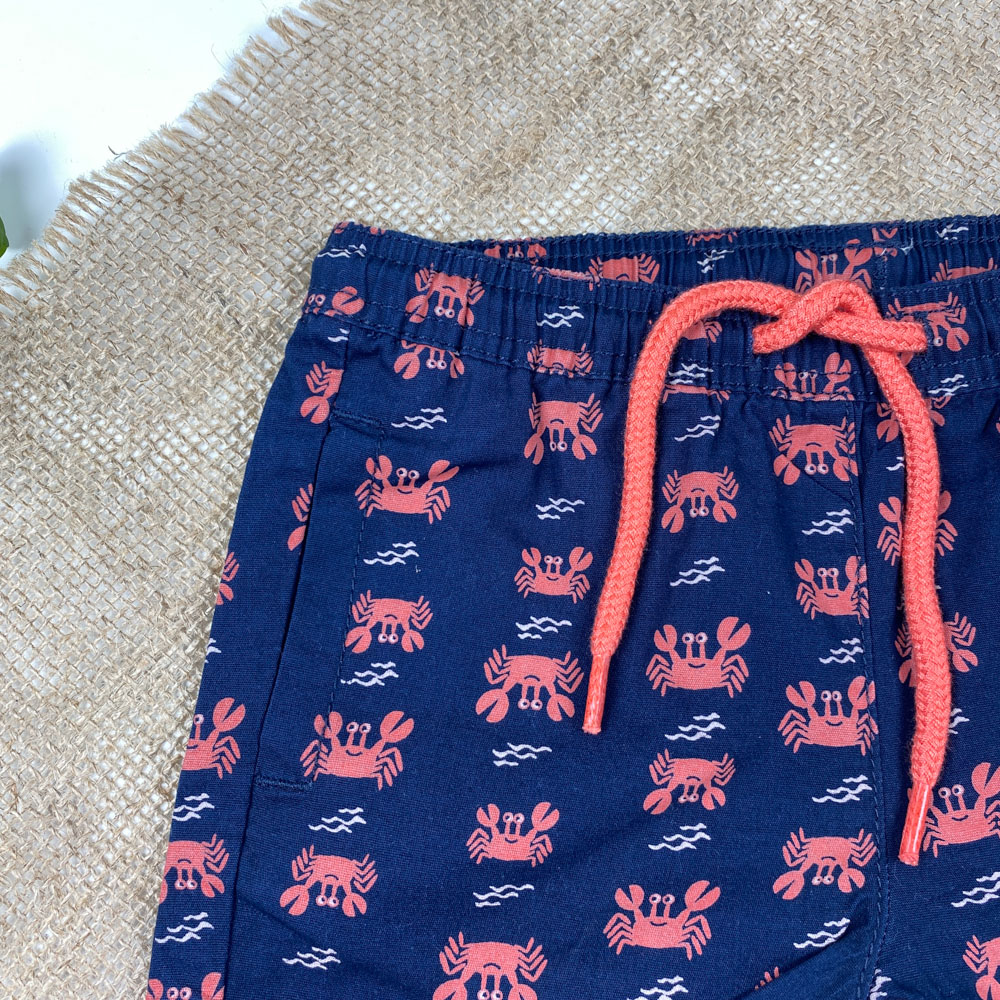 شلوارک نوزادی برند لوپیلو طرح خرچنگ ها کمرکش بندک گلبهی سرمه ای رنگ – 12 تا 24 ماه