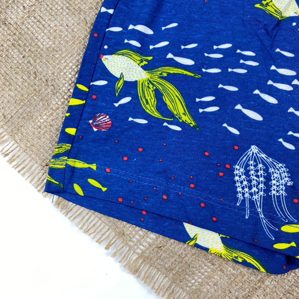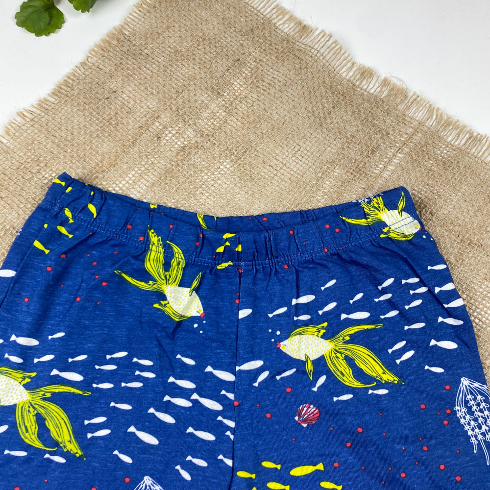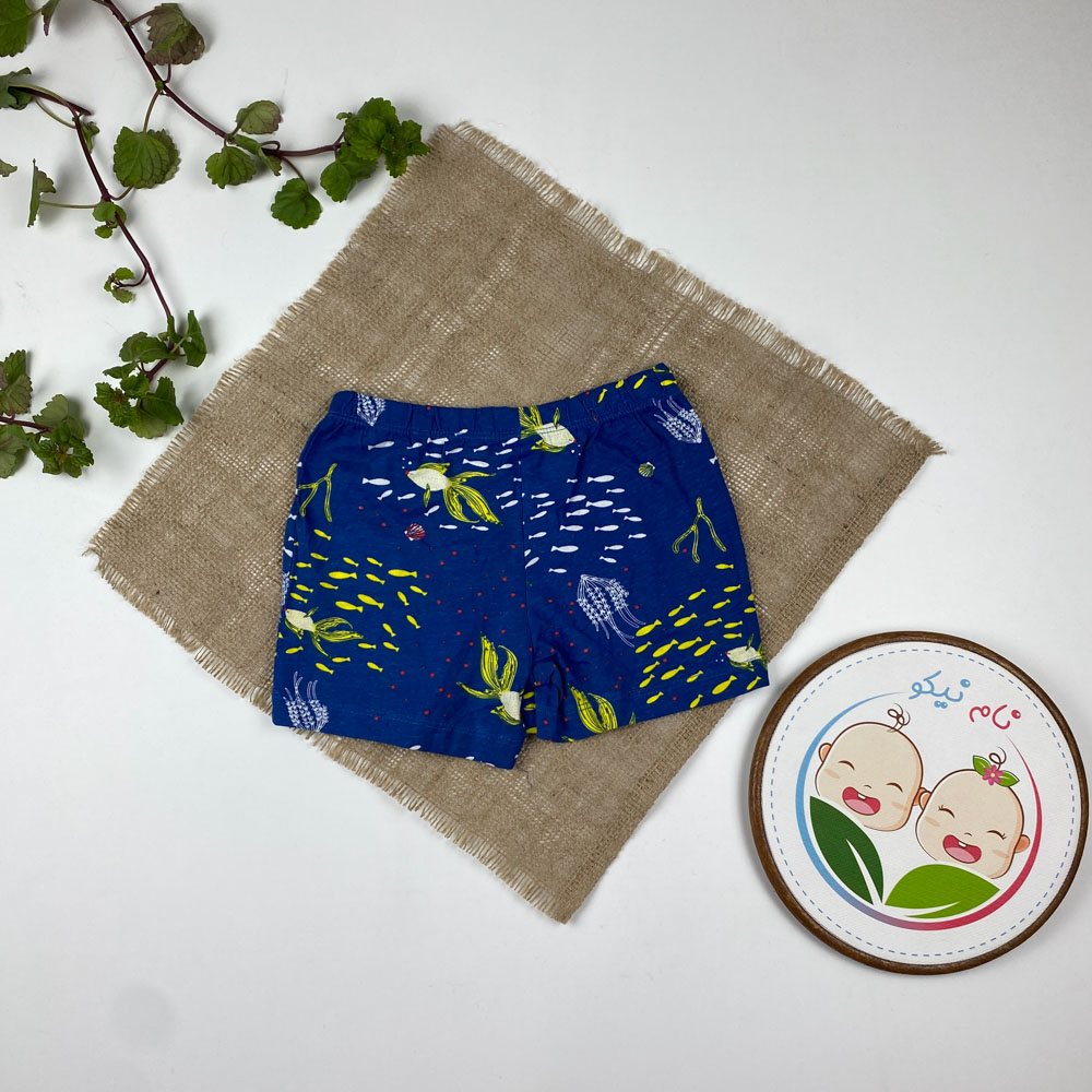 شلوارک نوزادی دخترانه طرح دریا و ماهی سرمه ای رنگ – 12 تا 24 ماه