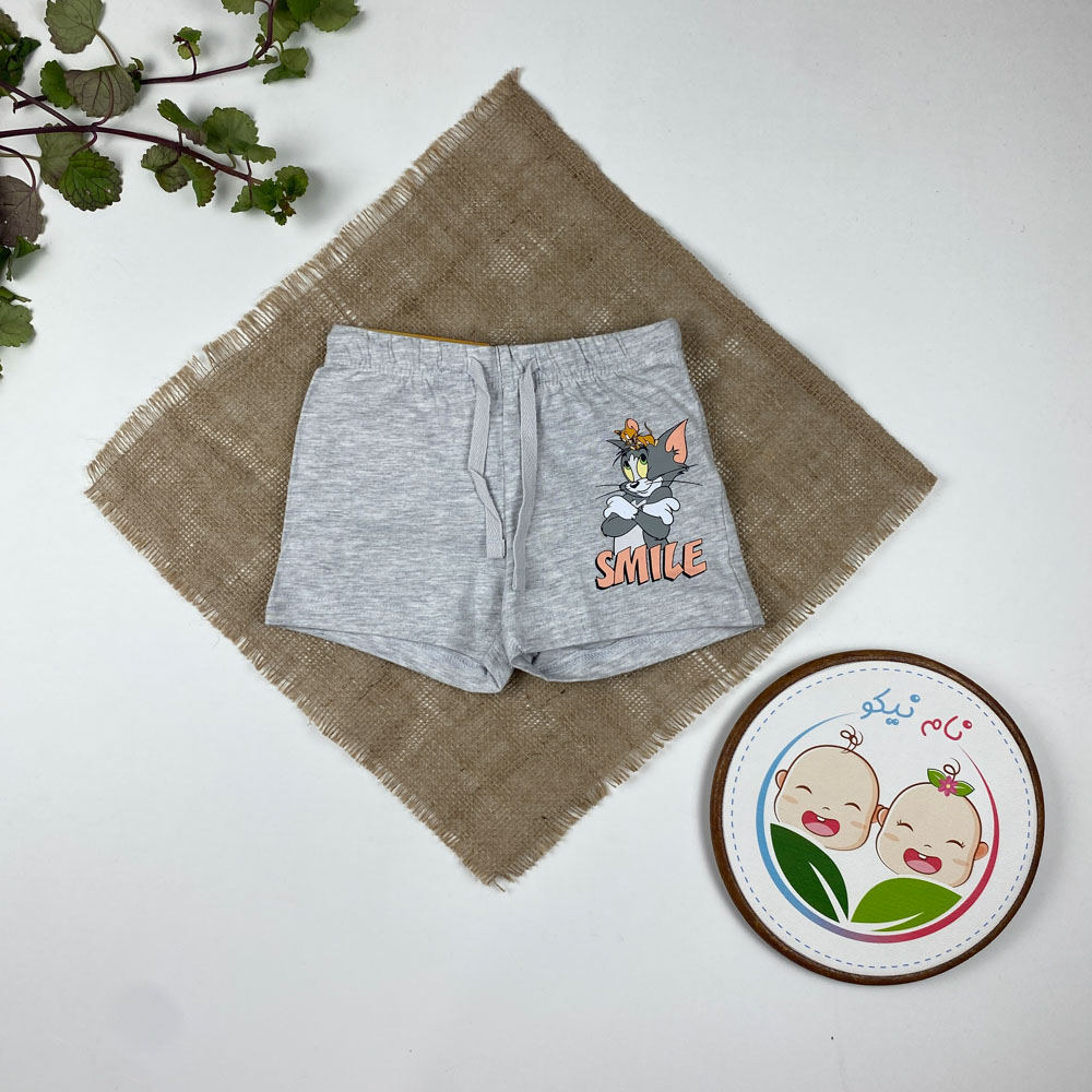 شلوارک نوزادی طرح تام جری بندک طوسی طوسی روشن رنگ – 12 تا 24 ماه