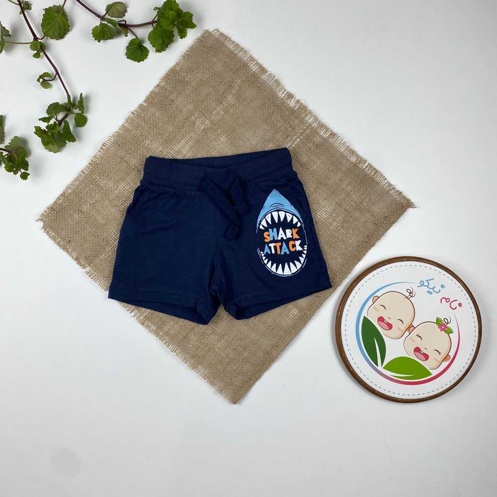 شلوارک نوزادی پسرانه برند لوپیلو طرح دندان کوسه جیب دار بندک سرمه ای سرمه ای رنگ – 12 تا 24 ماه