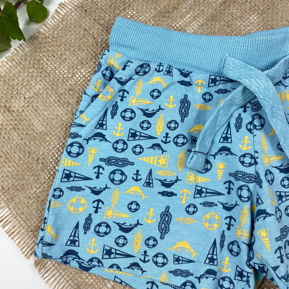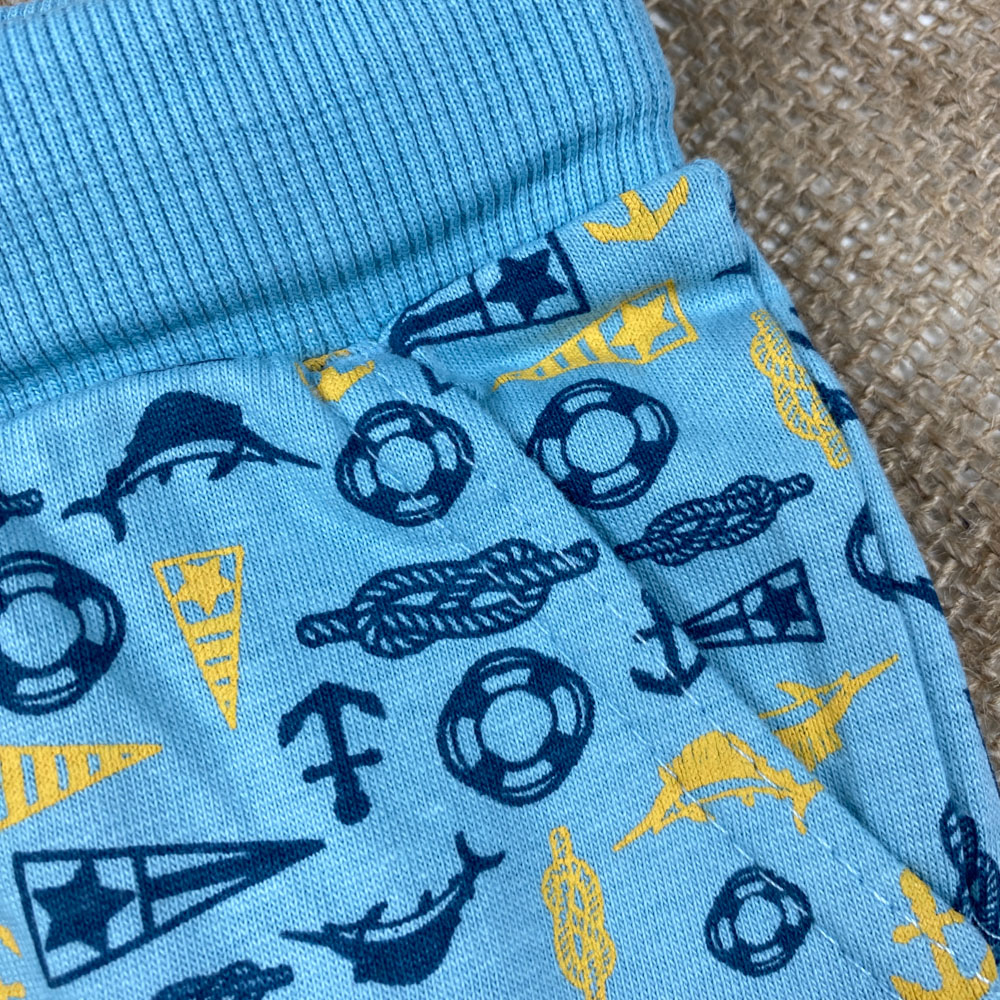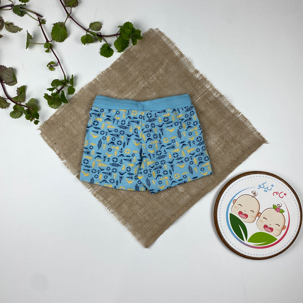 شلوارک نوزادی پسرانه برند لوپیلو طرح لنگر دریا جیب دار بندک آبی آبی آسمانی رنگ – 12 تا 24 ماه