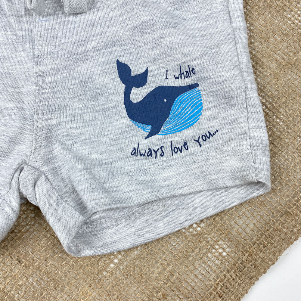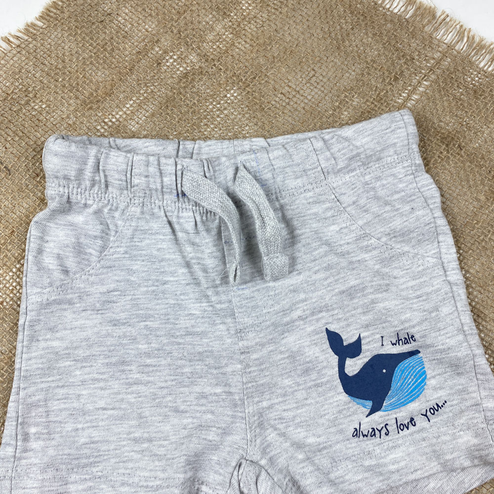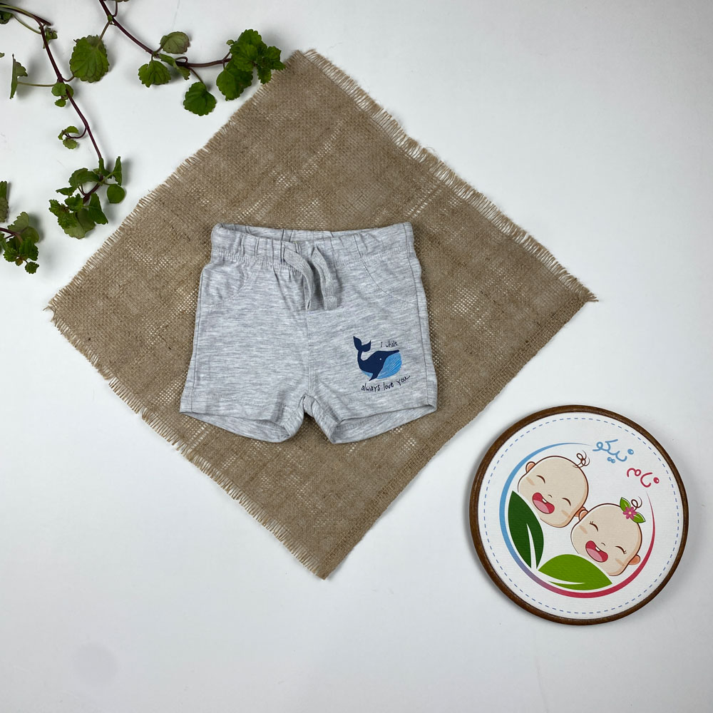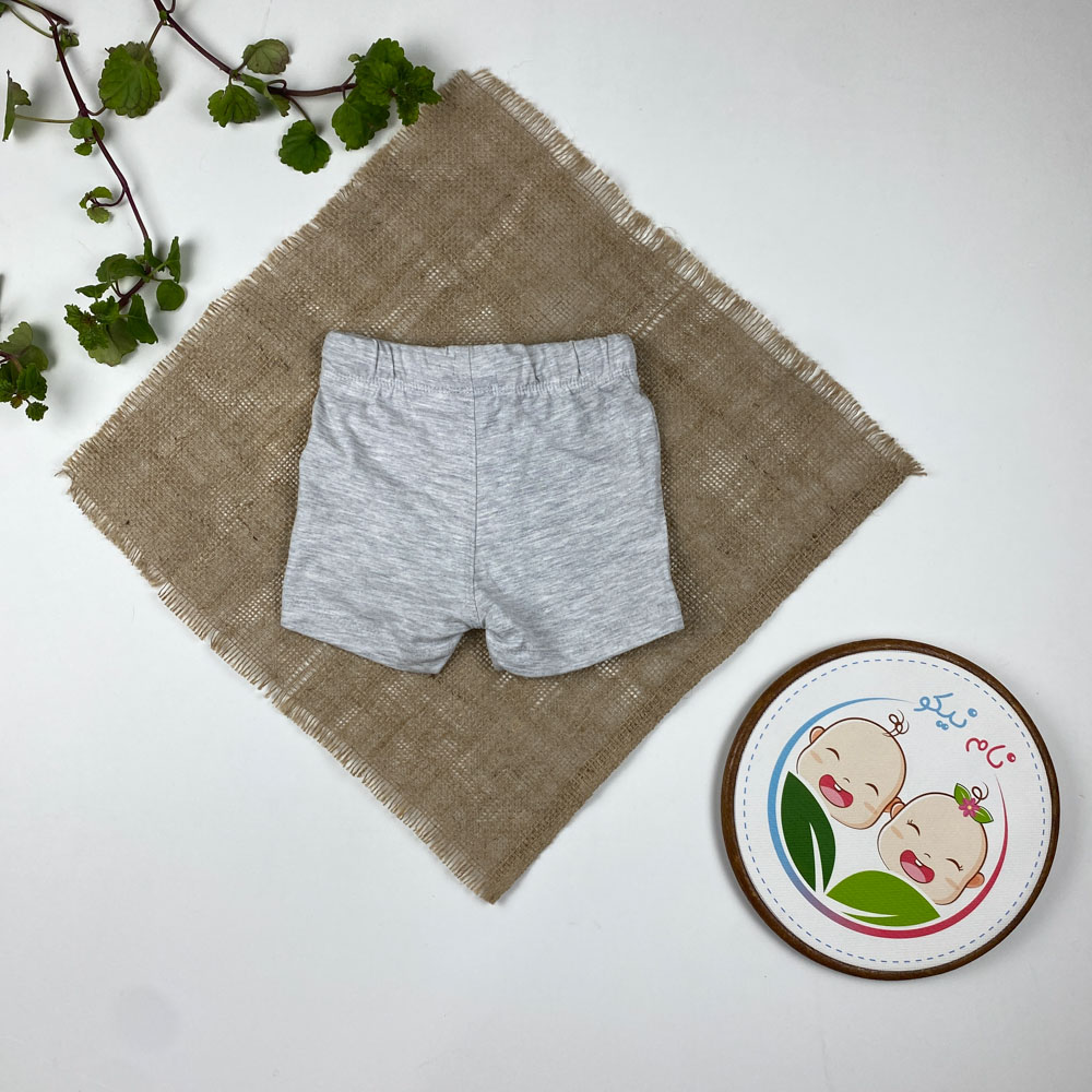 شلوارک نوزادی پسرانه برند لوپیلو طرح کوسه جیب دار بندک طوسی طوسی روشن رنگ