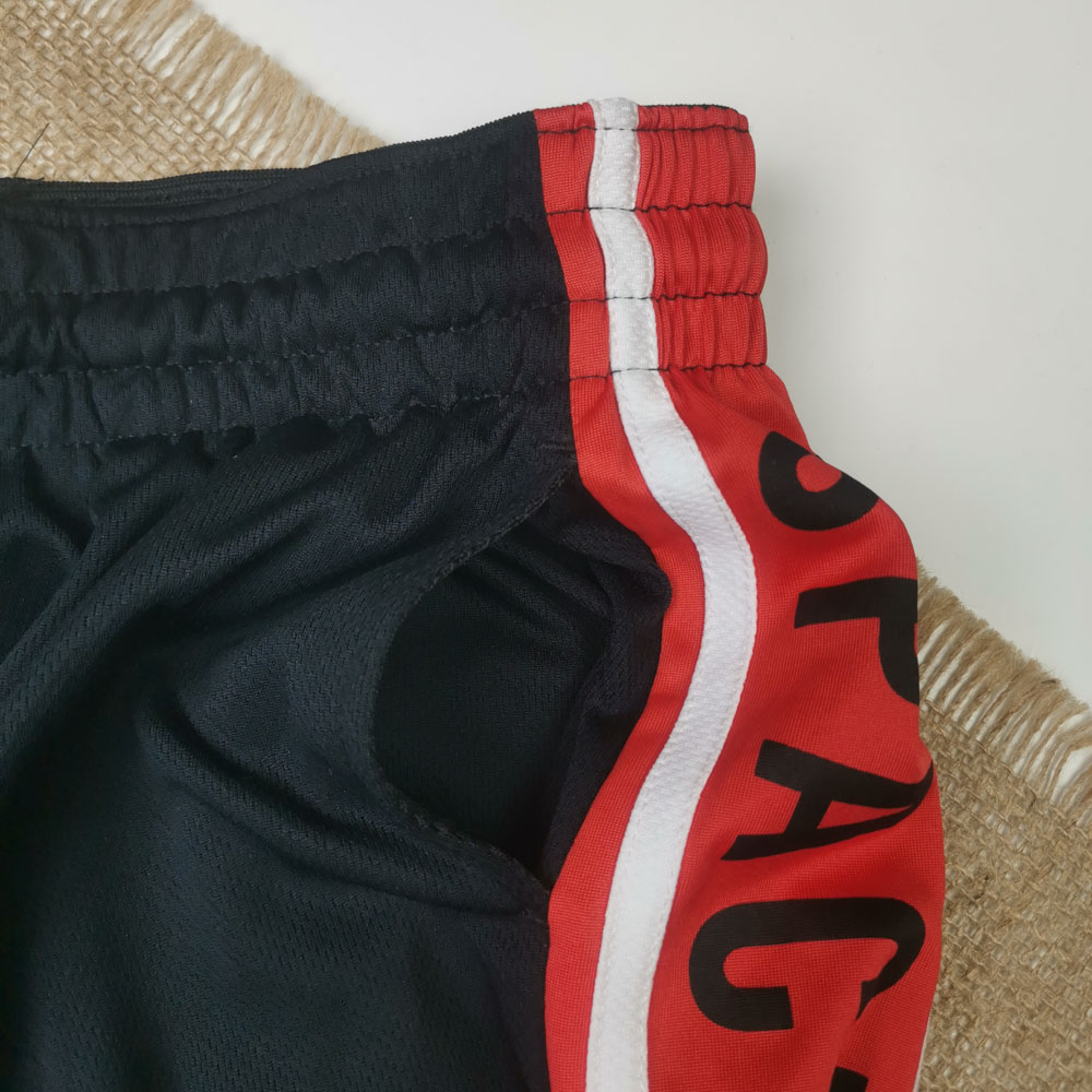 شلوارک پسرانه برند OVS طرح نوشته دار جیب دار کمربند دار مشکی رنگ – 7 تا 8 سال
