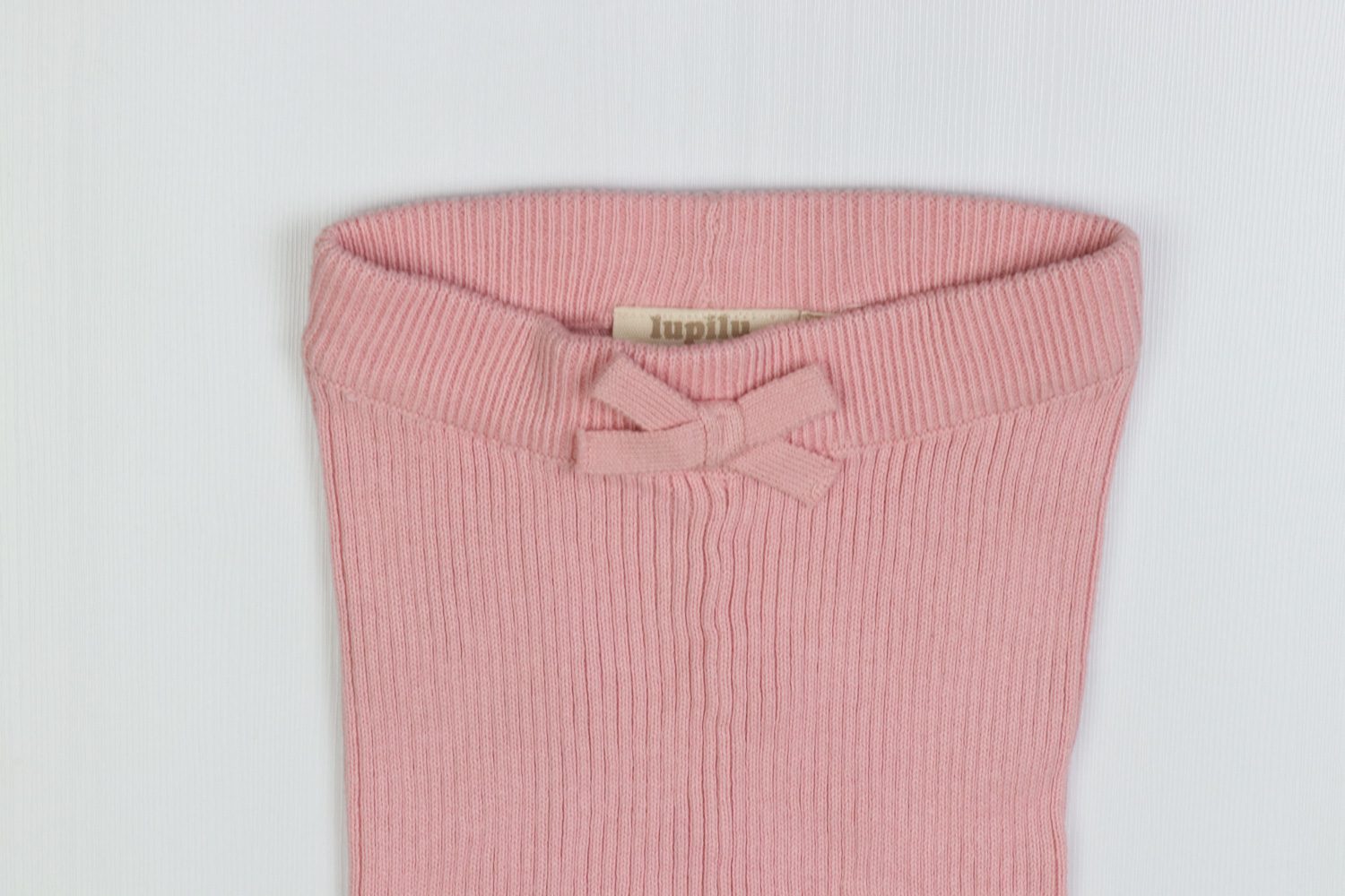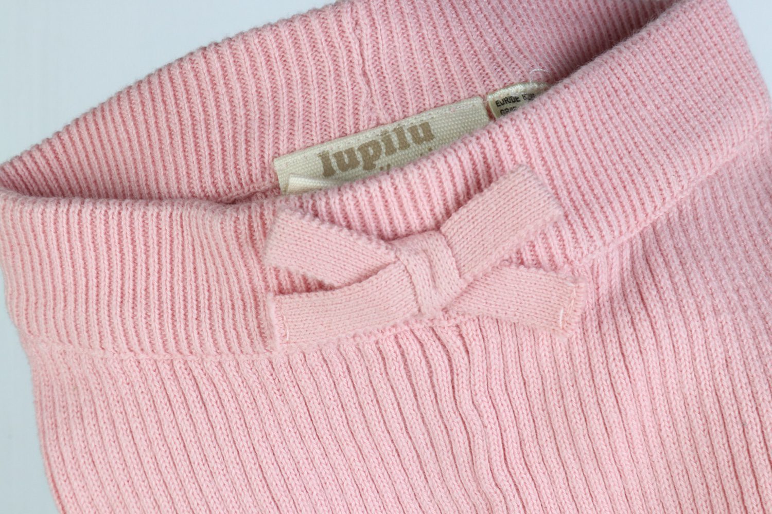 شلوار بافت لوپیلو طرح صورتی پاپیون دار