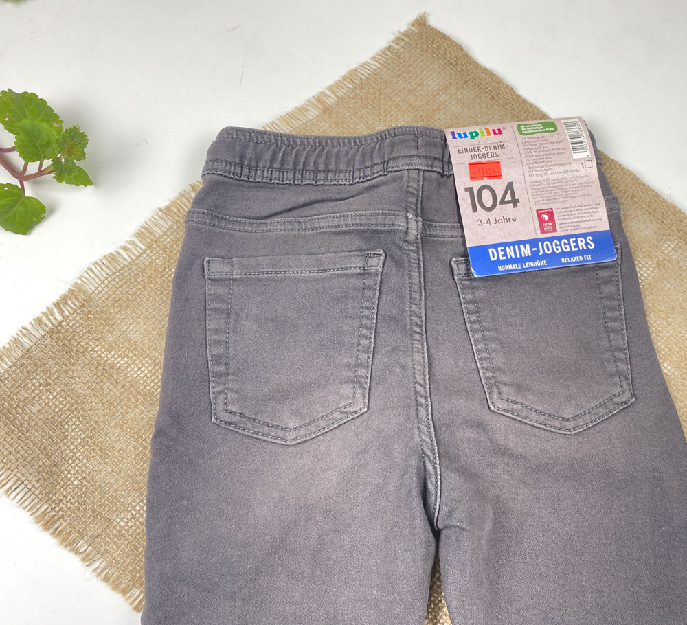 شلوار جین اسلش برند lupilu طرح پایین کش دار کمربند مشکی دار ذغالی رنگ