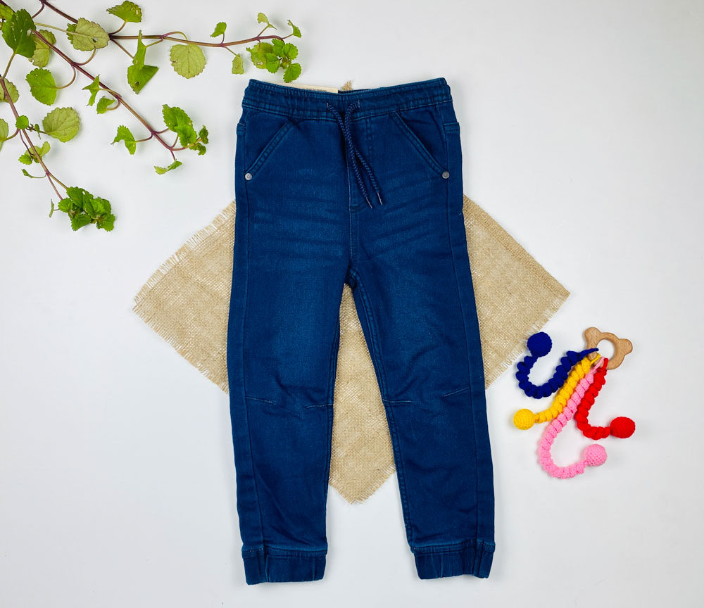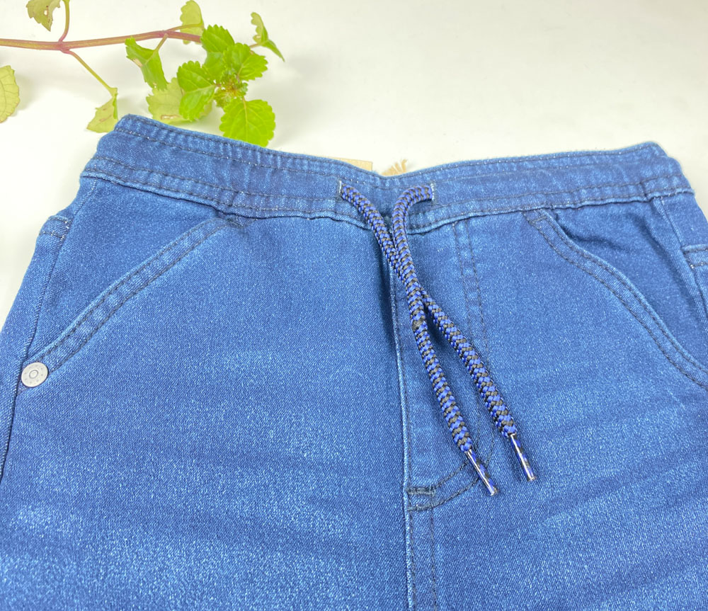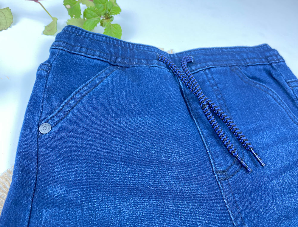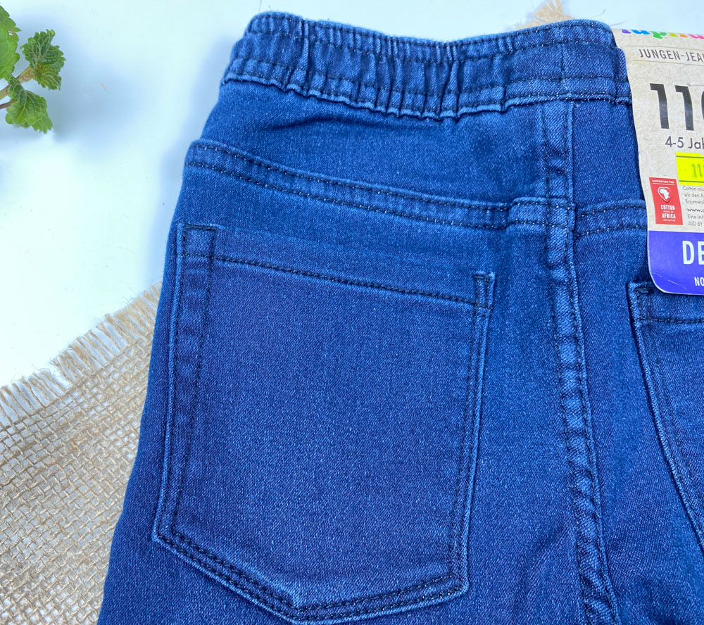 شلوار جین اسلش برند lupilu طرح پایین کش دار کمربند مشکی دار آبی نفتی رنگ
