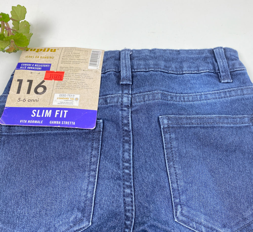 شلوار جین برند لوپیلو طرح کمر دکمه ای جیب دار سرمه ای لی رنگ – 5 تا 6 سال