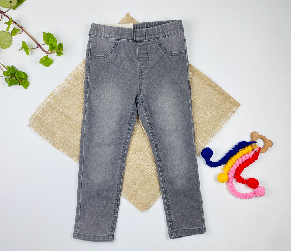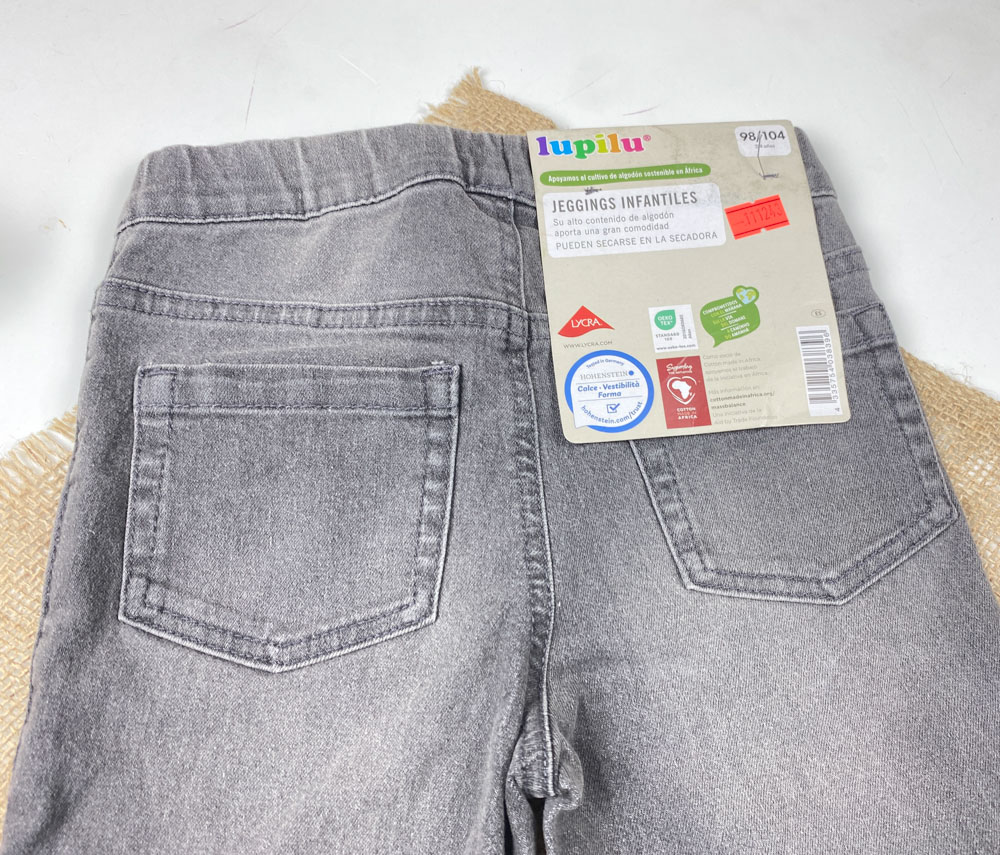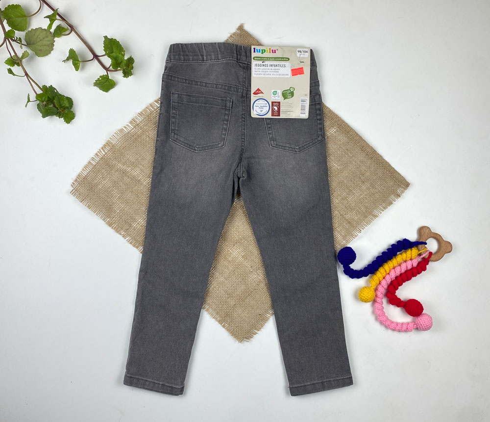شلوار جین برند lupilu طرح جیب نما کمرکش و کش تنظیم دار فیلی رنگ