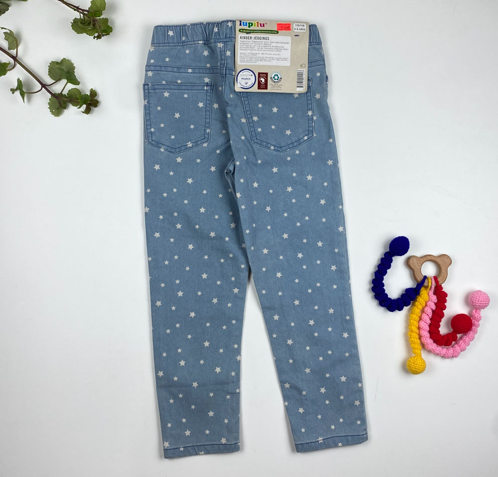 شلوار جین دخترانه برند لوپیلو طرح ستاره ای کمرکش آبی روشن رنگ – 4 تا 6 سال