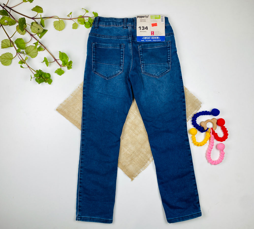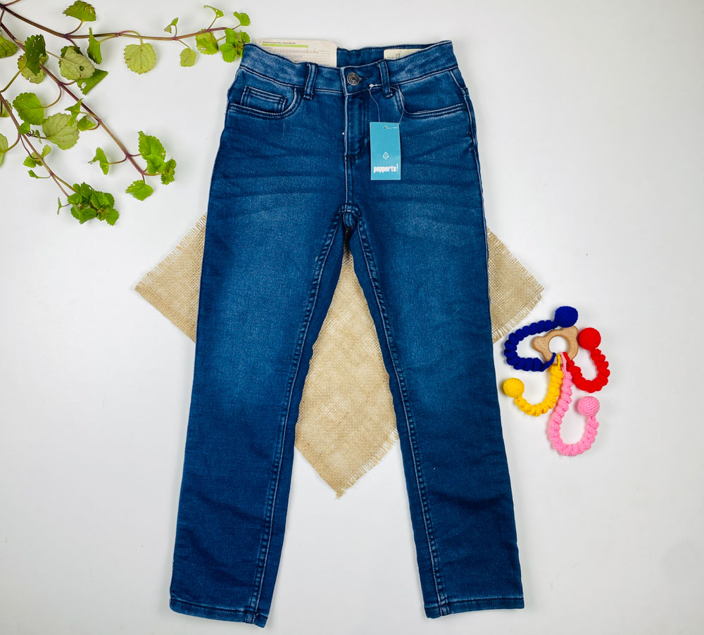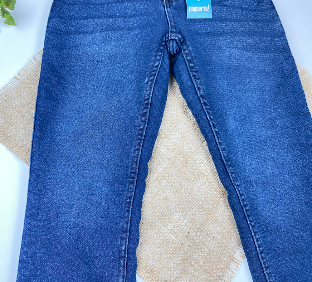شلوار جین راسته برند pepperts طرح جیب دار بند تنظیم دار سورمه ای رنگ