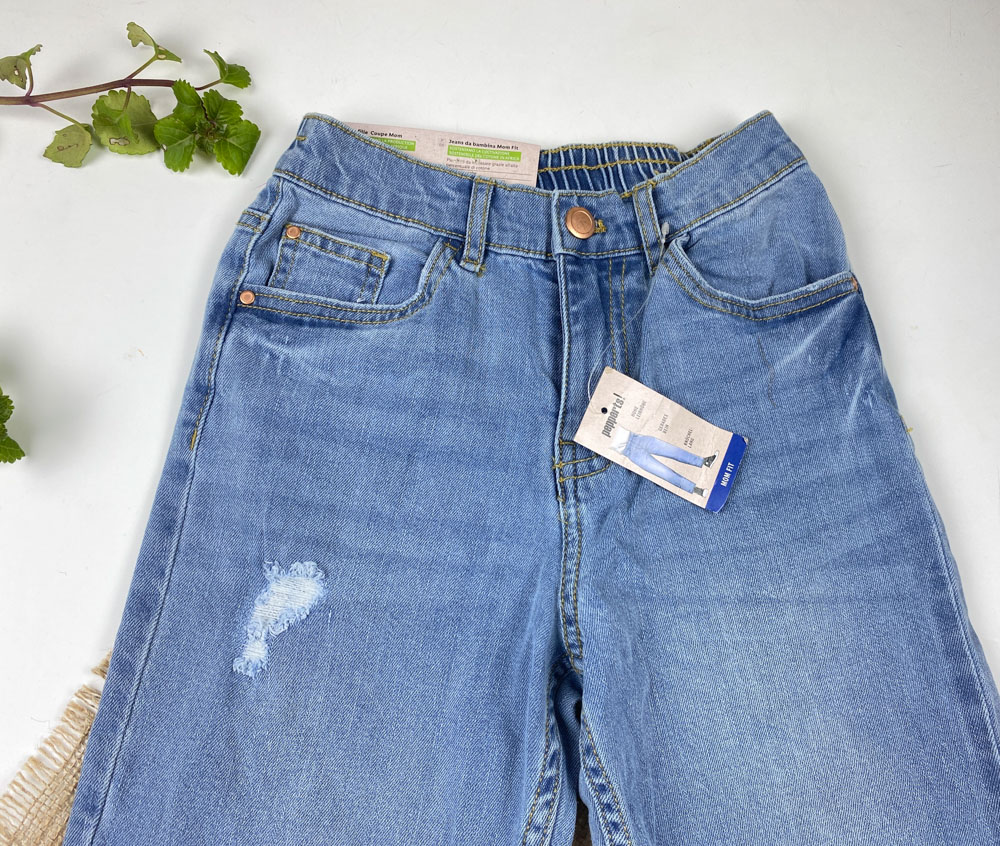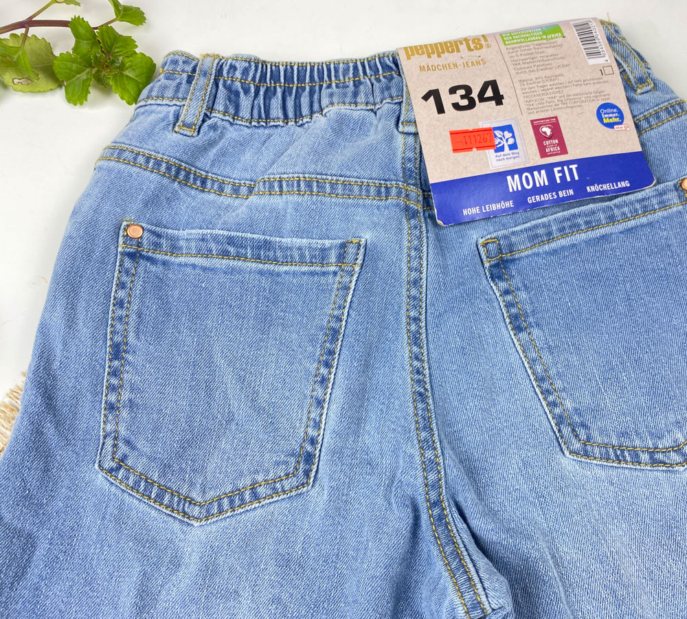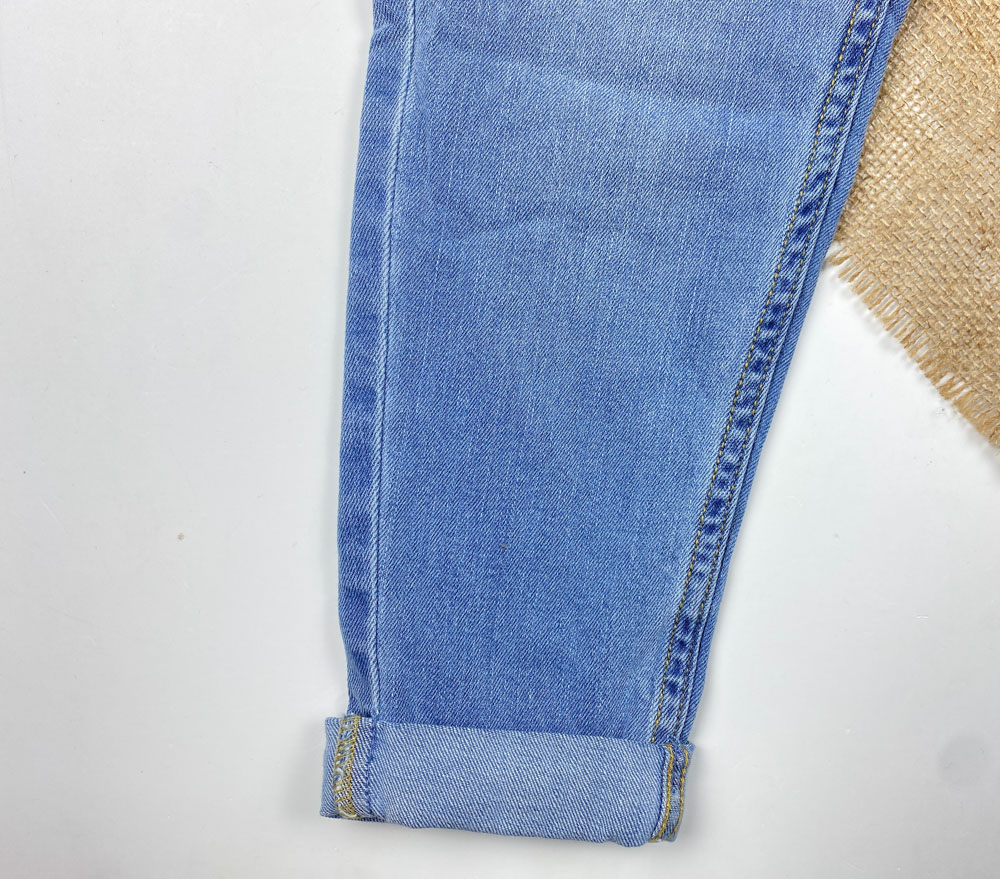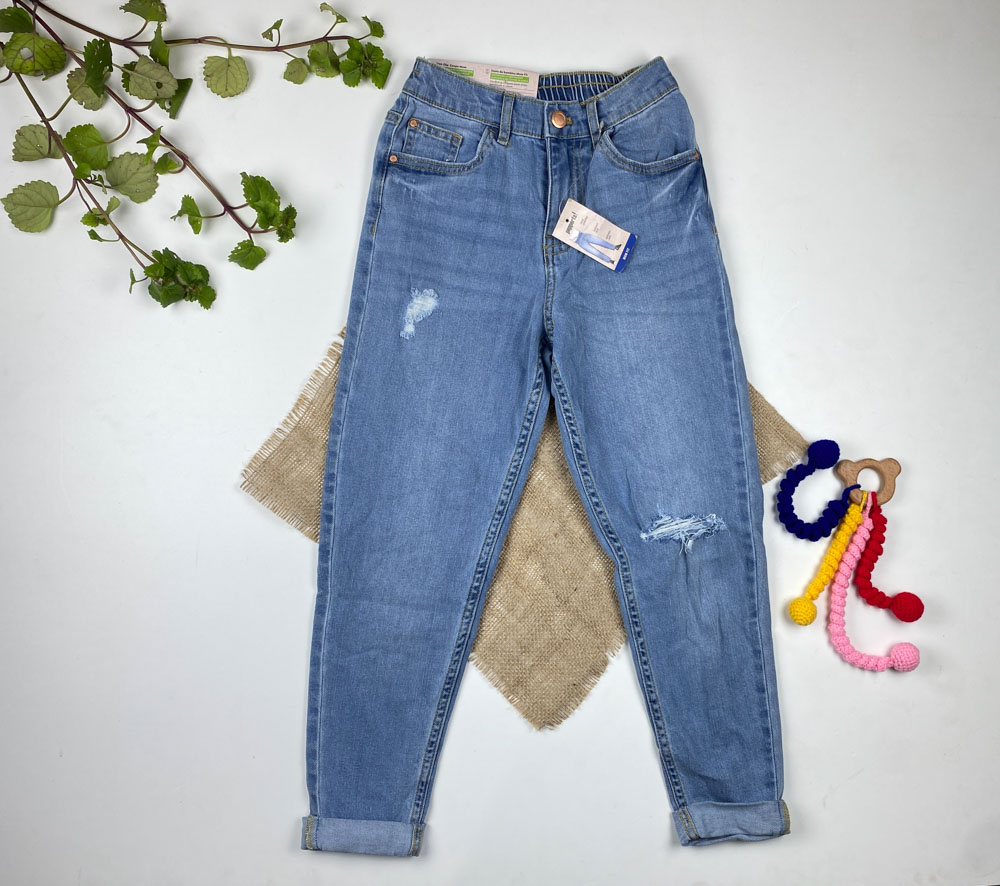 شلوار جین mom fit برند pepperts طرح زاپ دار کمر کش آبی روشن رنگ
