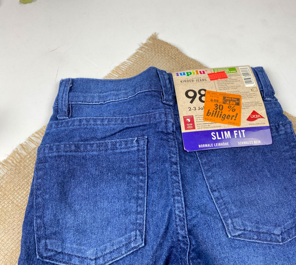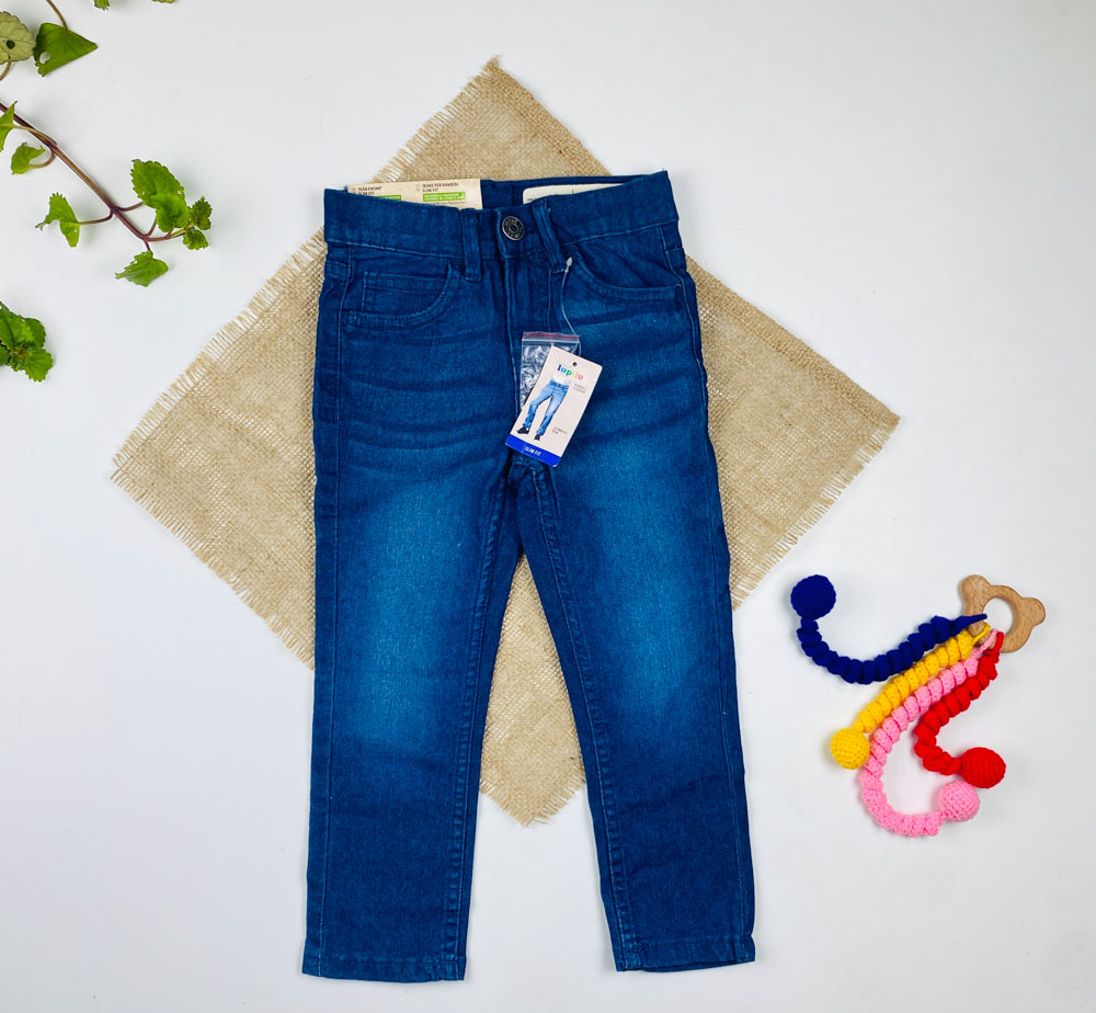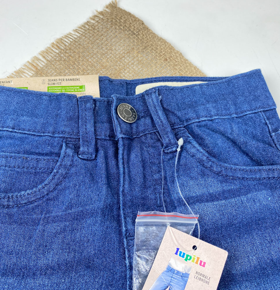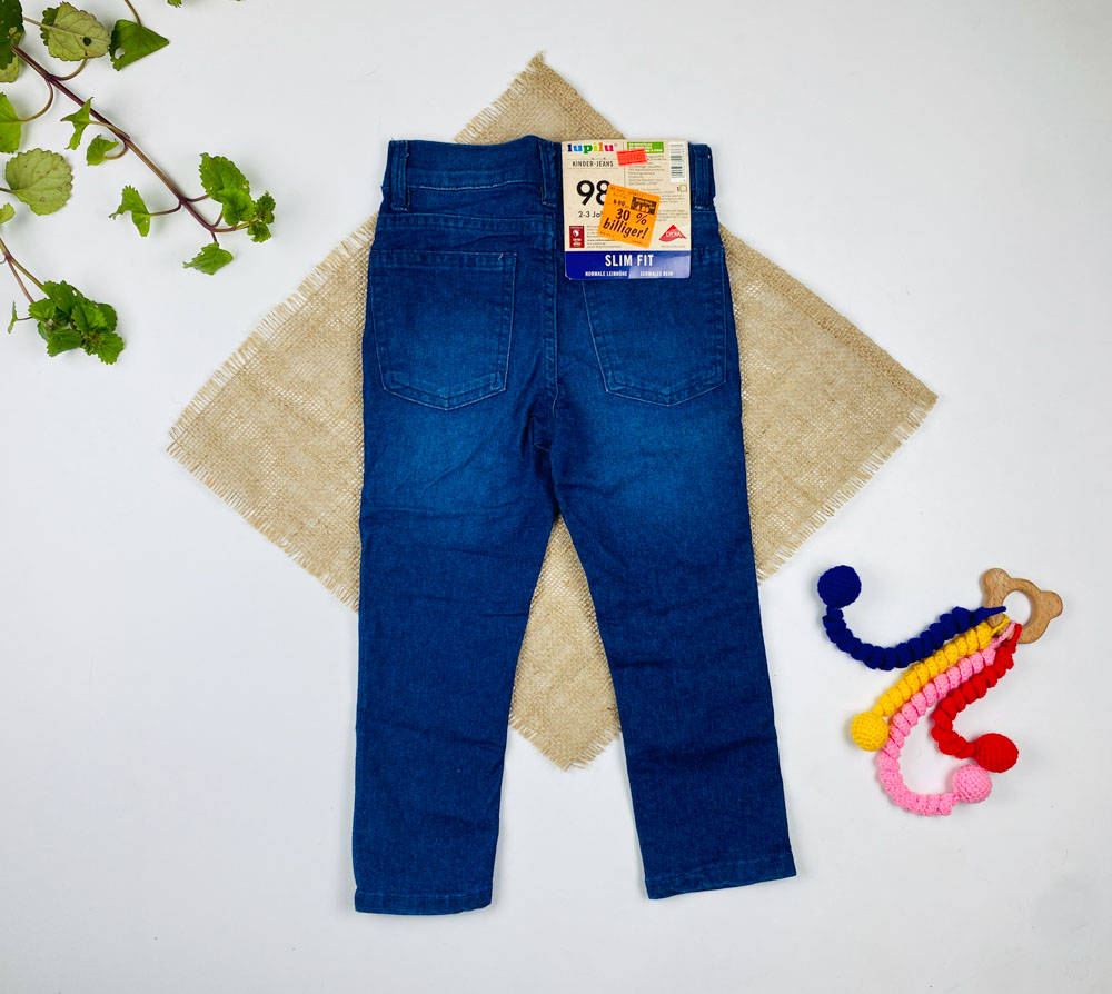شلوار جین slim fit برند lupilu طرح جیب دار دکمه قزن دار سورمه ای رنگ
