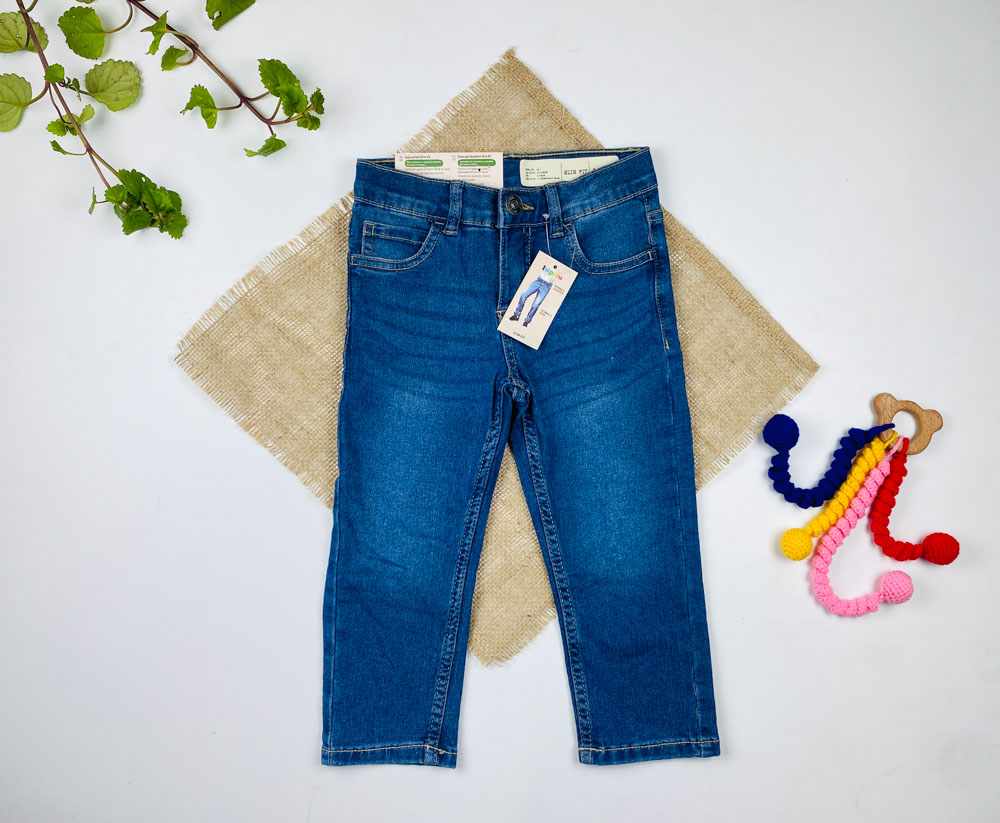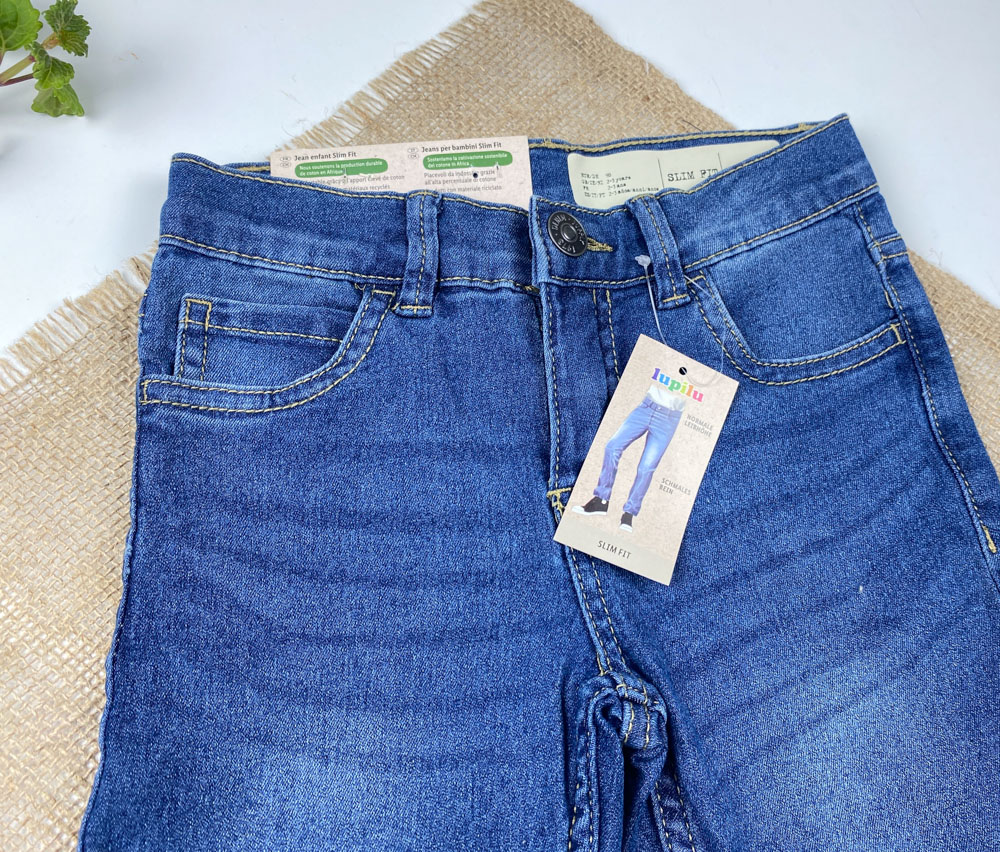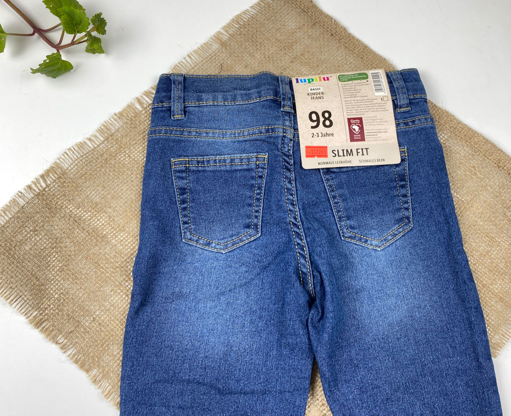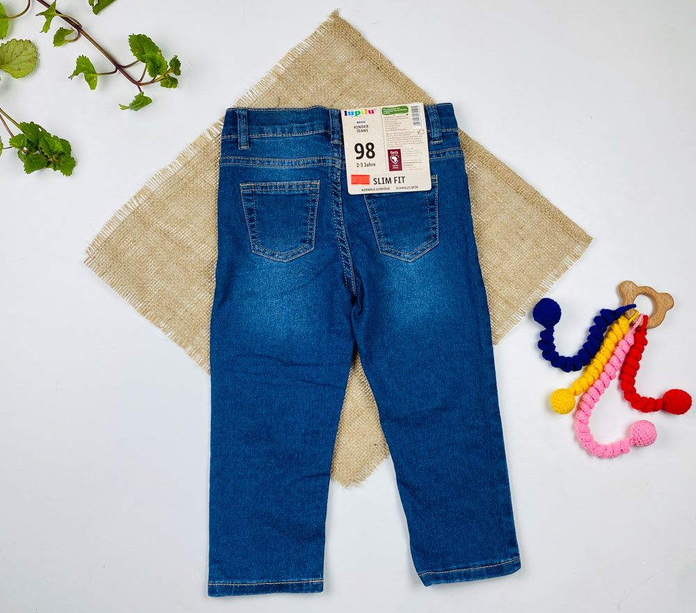 شلوار جین slim fit برند lupilu طرح جیب دار کش تنظیم دار آبی رنگ