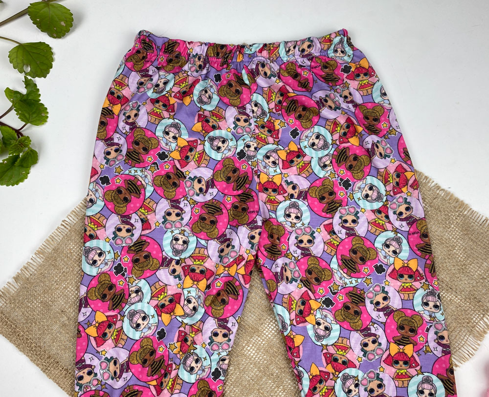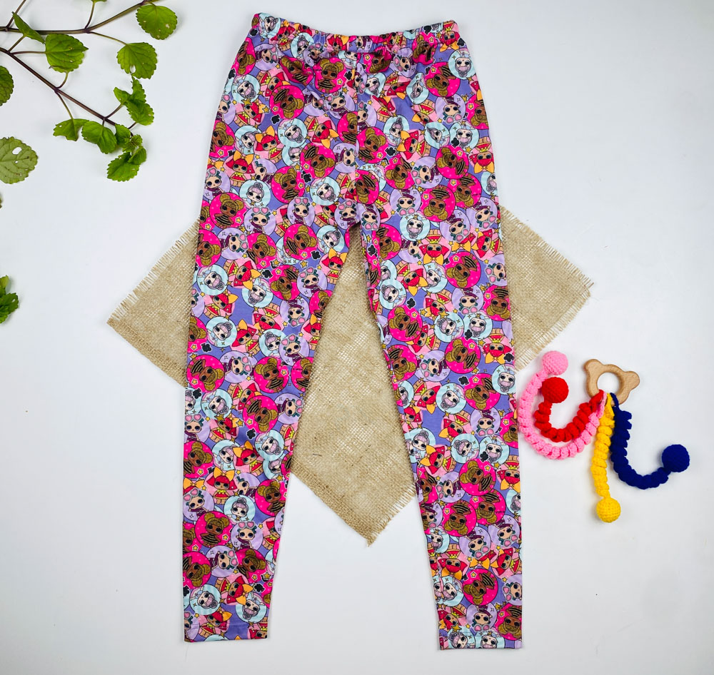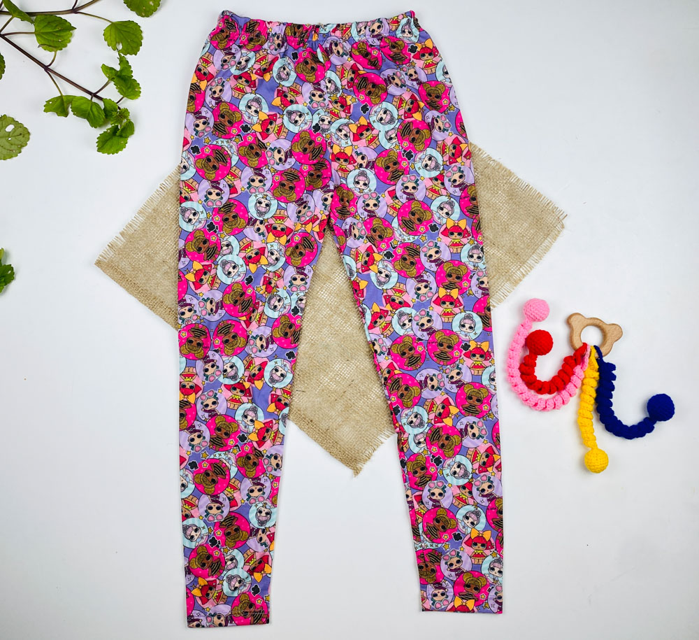 شلوار دخترانه برند لوپیلو طرح دختر رنگارنگ یاسی رنگ – 8 تا 9 سال