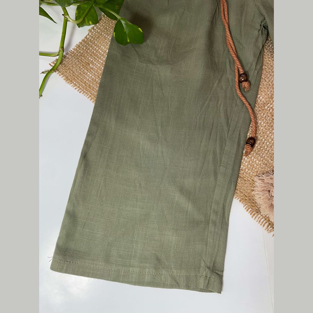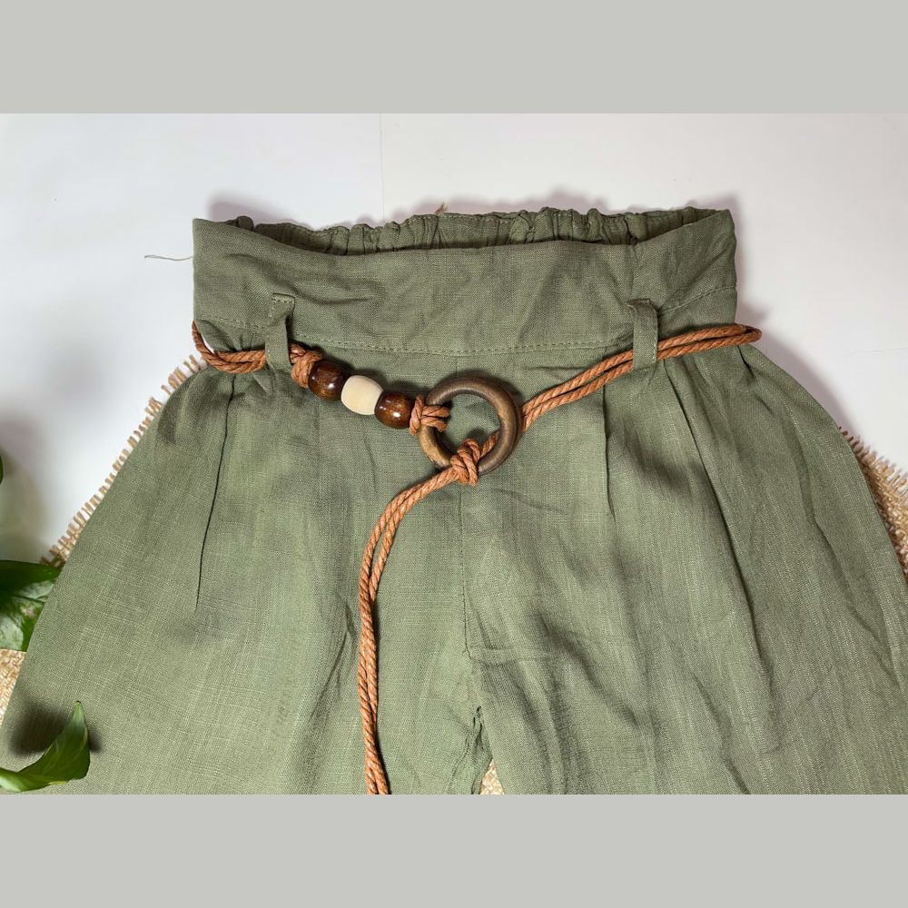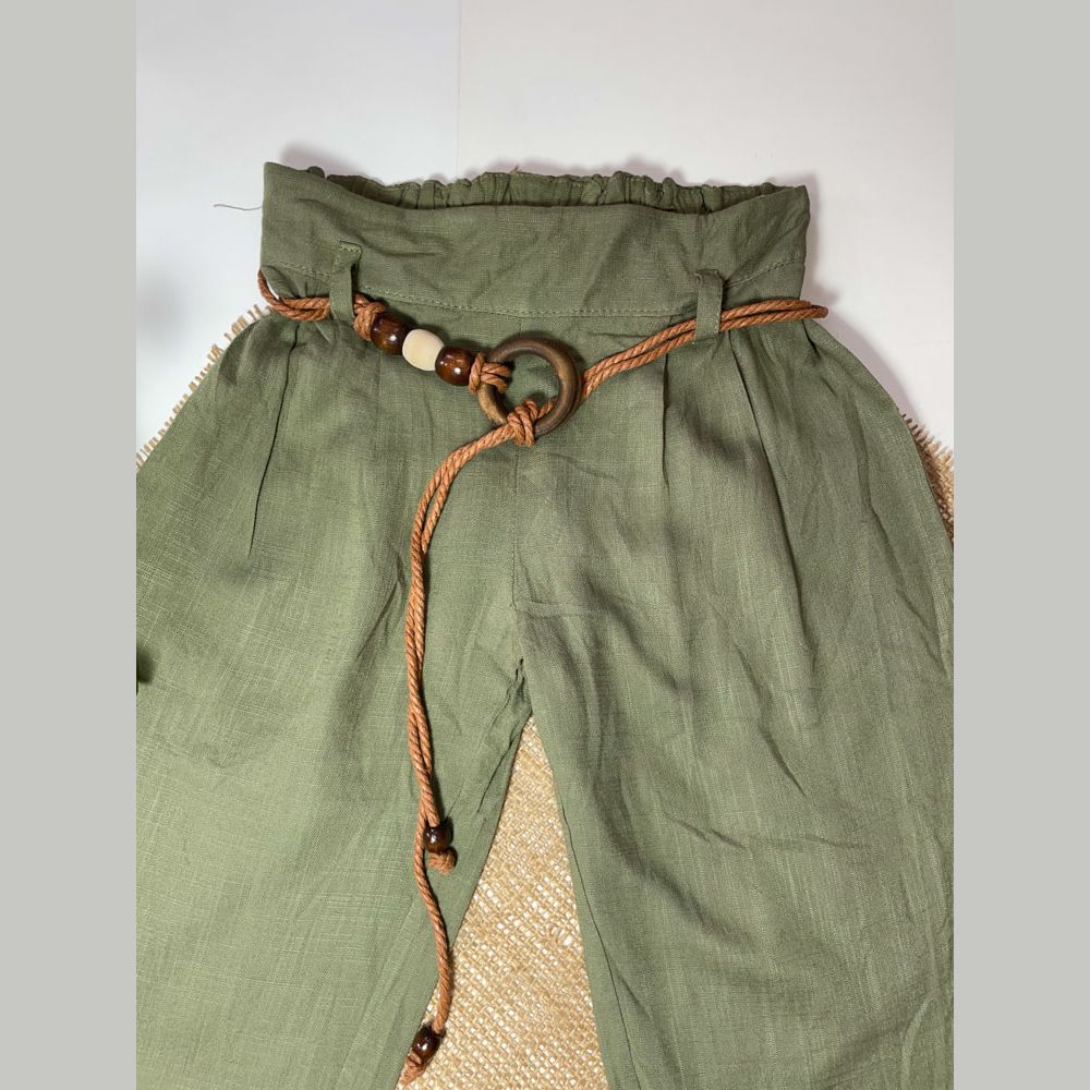 شلوار دخترانه راسته برند Intelligent طرح کمربندی سبز زیتونی رنگ – 2 تا 3 سال