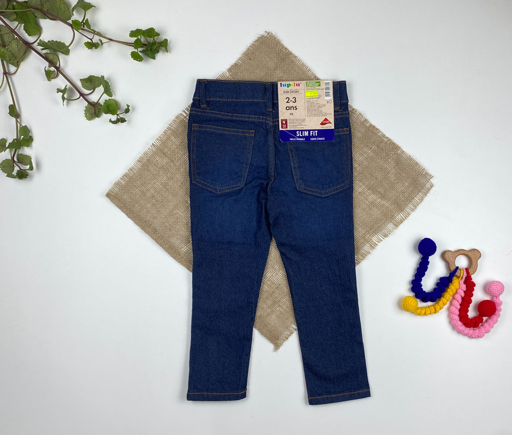شلوار دخترانه ساده برند لوپیلو طرح کمر دکمه ای جیب دار آبی سرمه ای رنگ