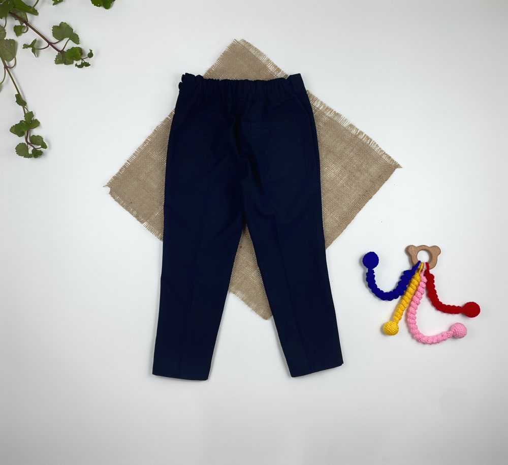 شلوار دخترانه ساده طرح کمر پاپیونی بدون دکمه سرمه ای رنگ – 3 سال