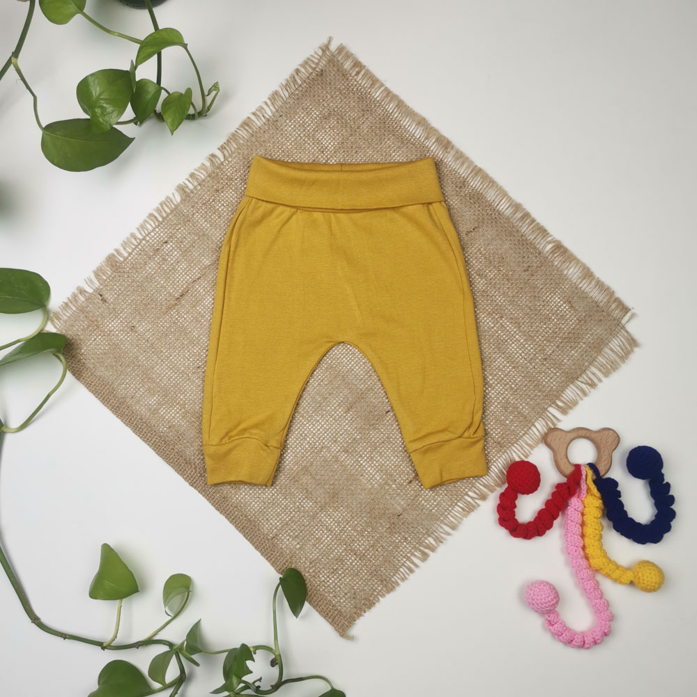 شلوار نوزادی اسلش کمرکش خردلی رنگ – 1 تا 2 ماه