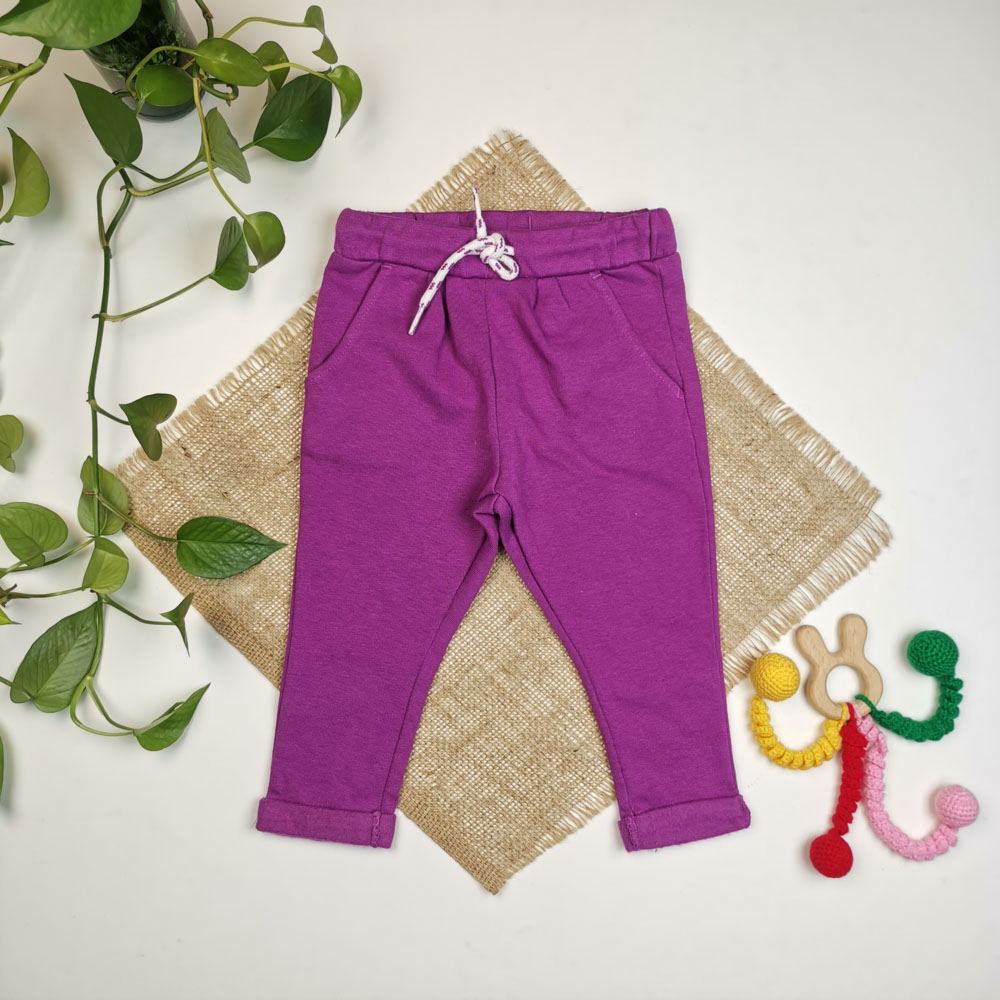 شلوار نوزادی برند لوپیلو طرح جیب دار تو کرکی بنفش رنگ