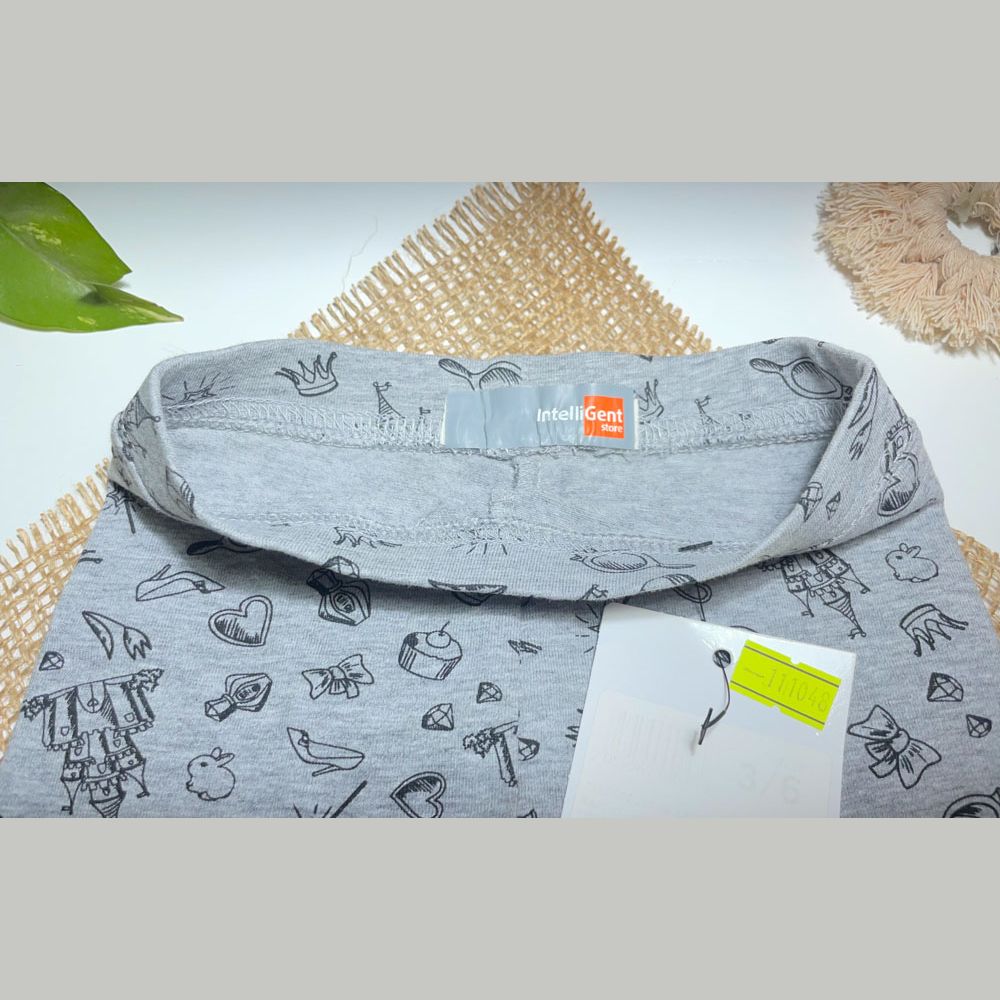 شلوار نوزادی دخترانه راسته برند Intelligent طرح عروسکی زمینه طوسی رنگ