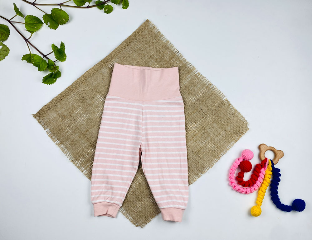 شلوار نوزادی دخترانه مچ دار برند لوپیلو طرح راه راه کمرکش پهن صورتی کمرنگ – 2 تا 6 ماه