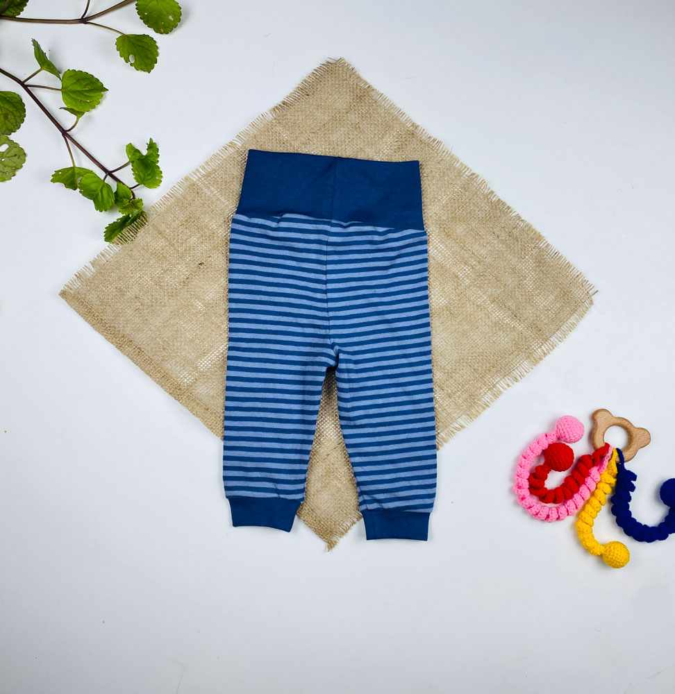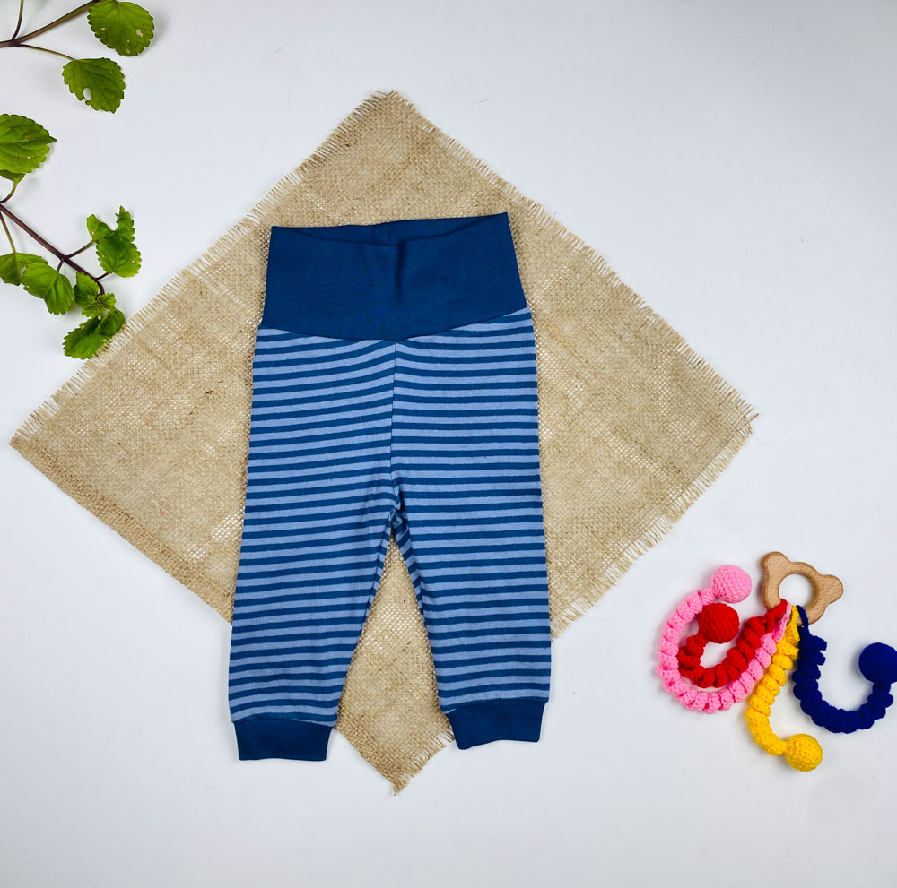 شلوار نوزادی مچ دار برند لوپیلو طرح راه راه کمرکش پهن سرمه ای رنگ