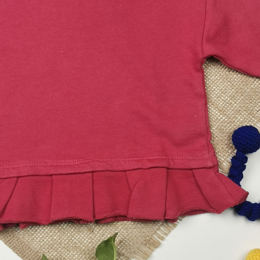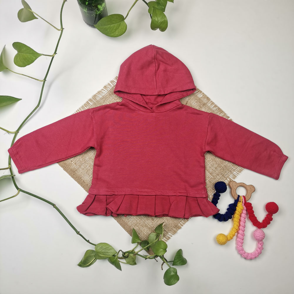 هودی تو دورس نوزادی دخترانه آستین بلند طرح چین دار کلاه دار گوشتی رنگ