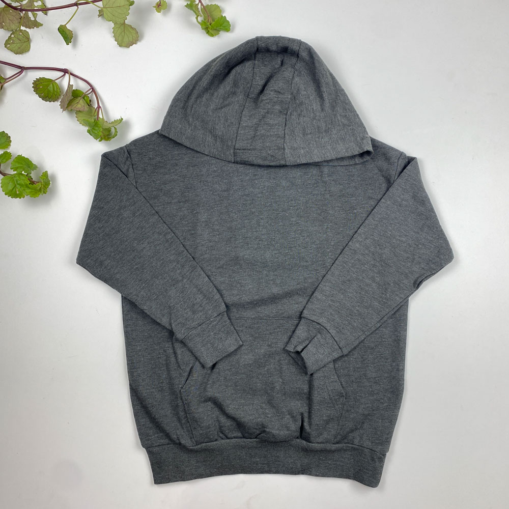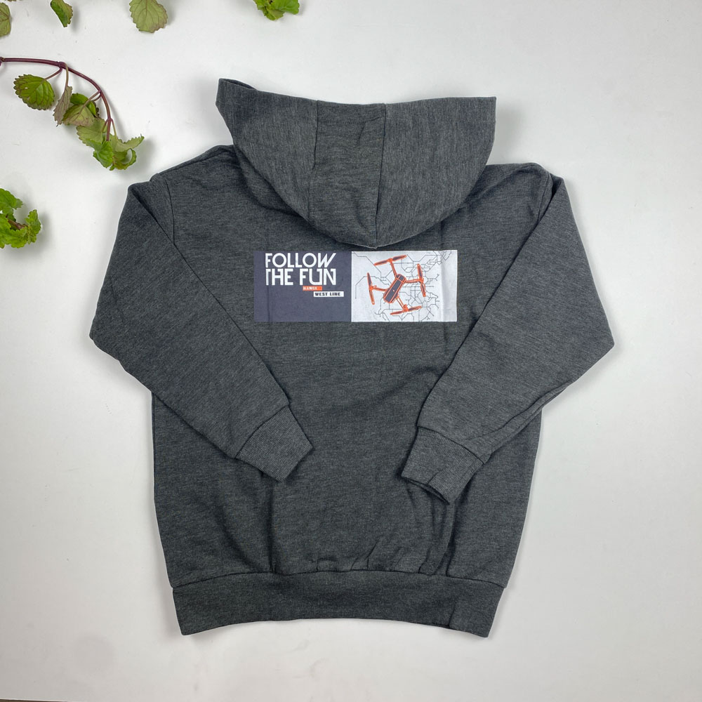 هودی پسرانه آستین بلند طرح ساده پشت طرح دار کلاه دار طوسی تیره رنگ – 8 تا 10 سال