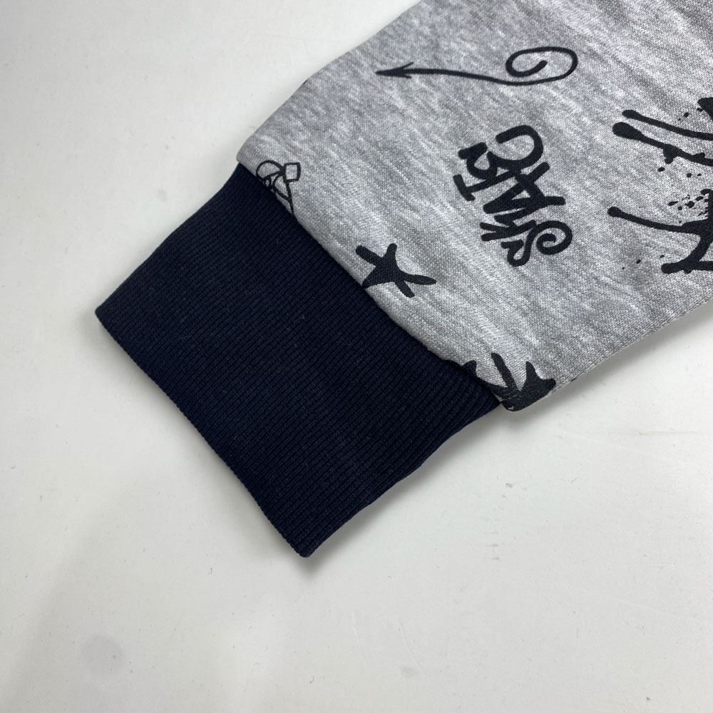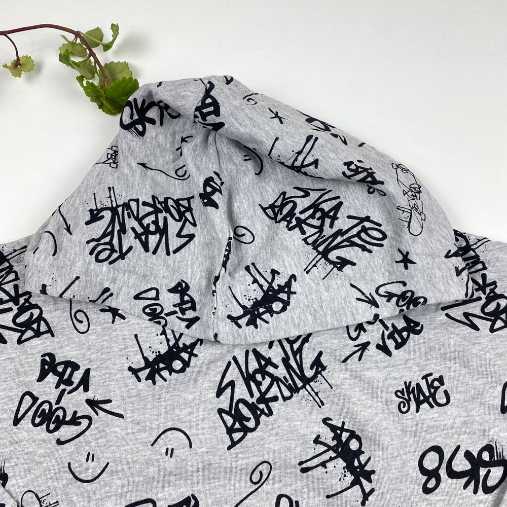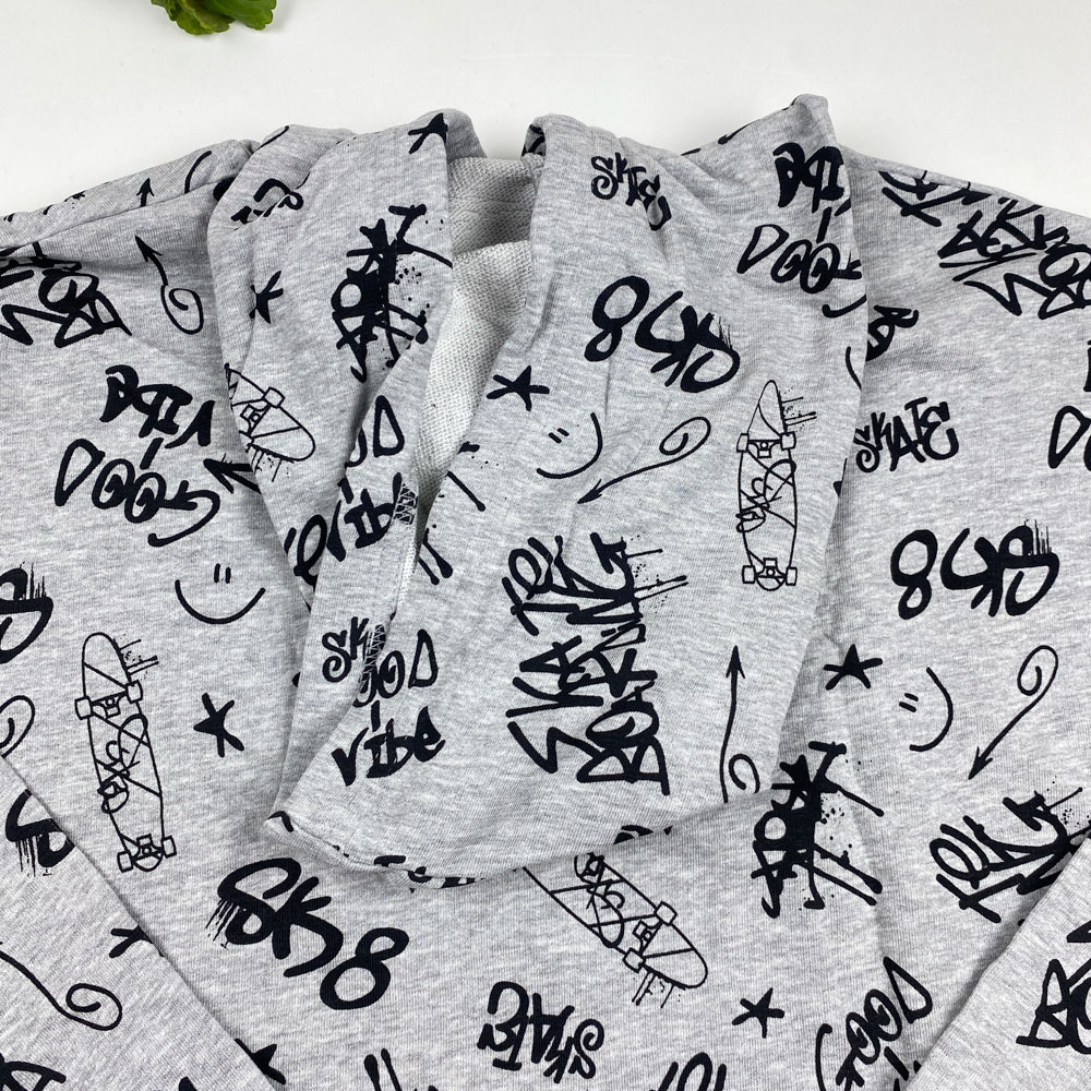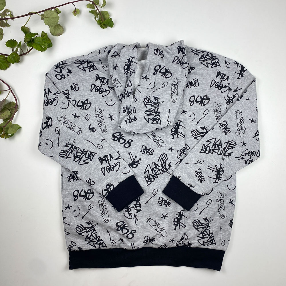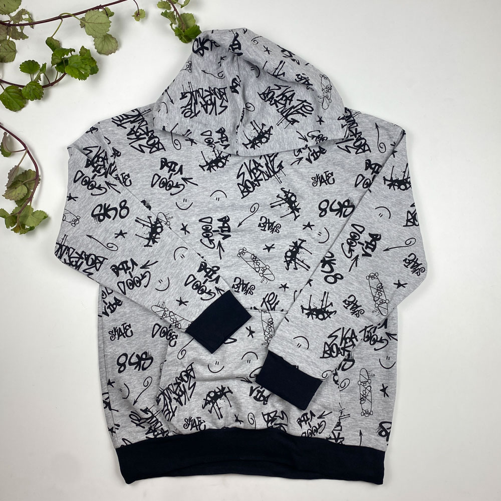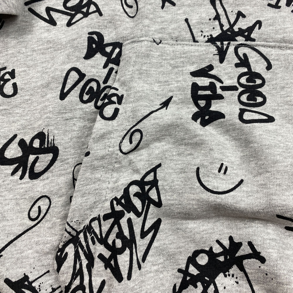 هودی پسرانه آستین بلند طرح طرح لبخند و متن لاتین کلاه دار جلوبسته طوسی رنگ – 12 تا 14 سال