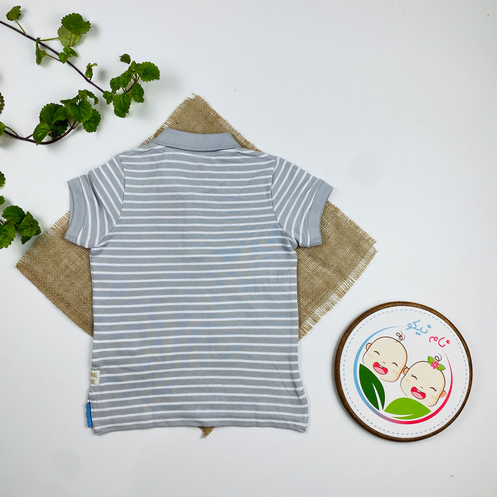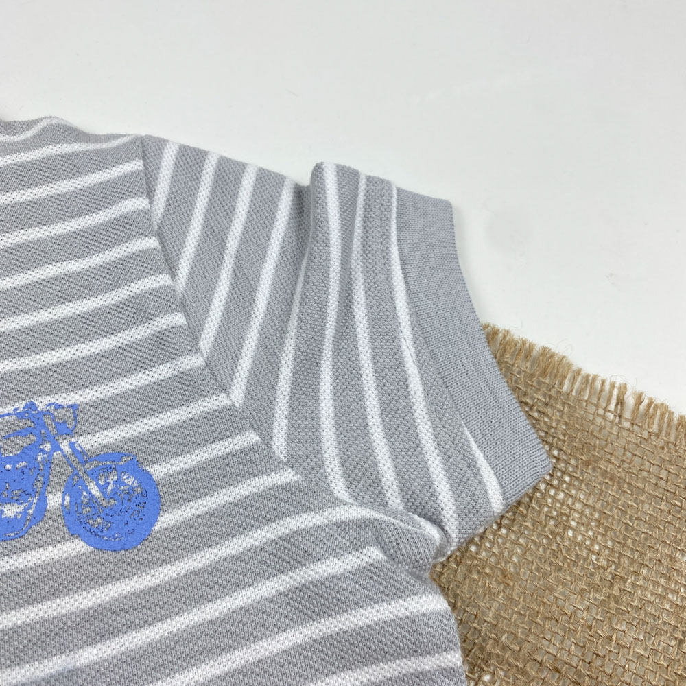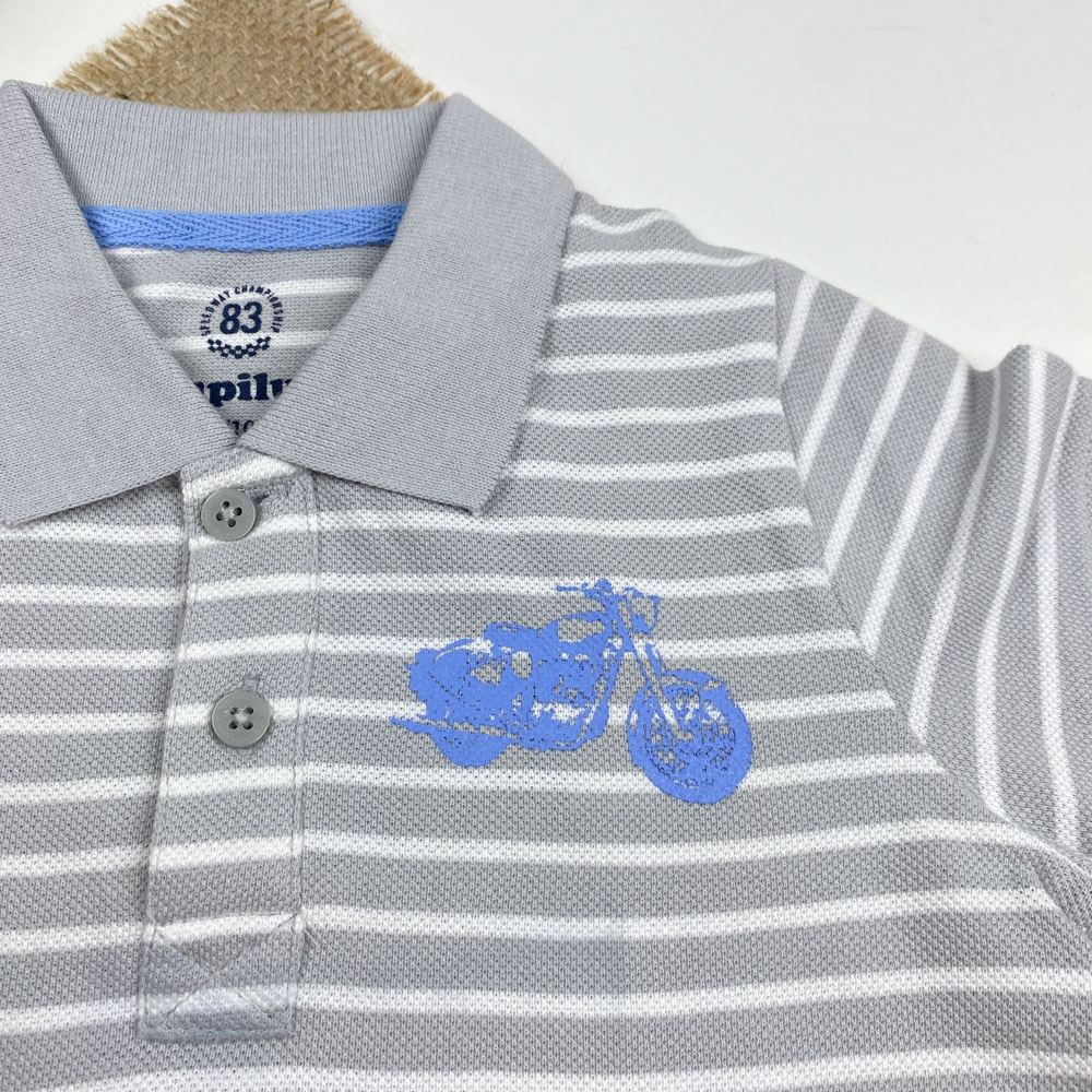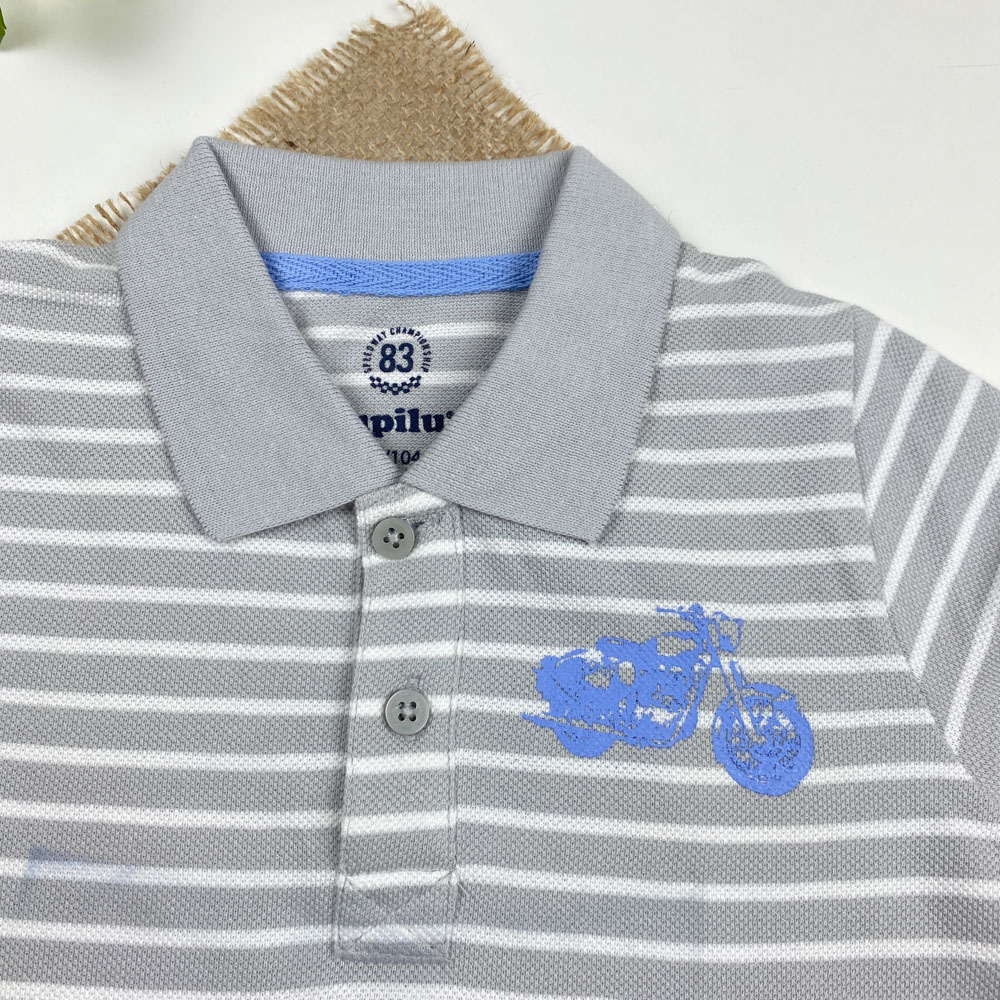 پولوشرت آستین کوتاه برند لوپیلو طرح موتور دو دکمه طوسی رنگ – 2 تا 4 سال