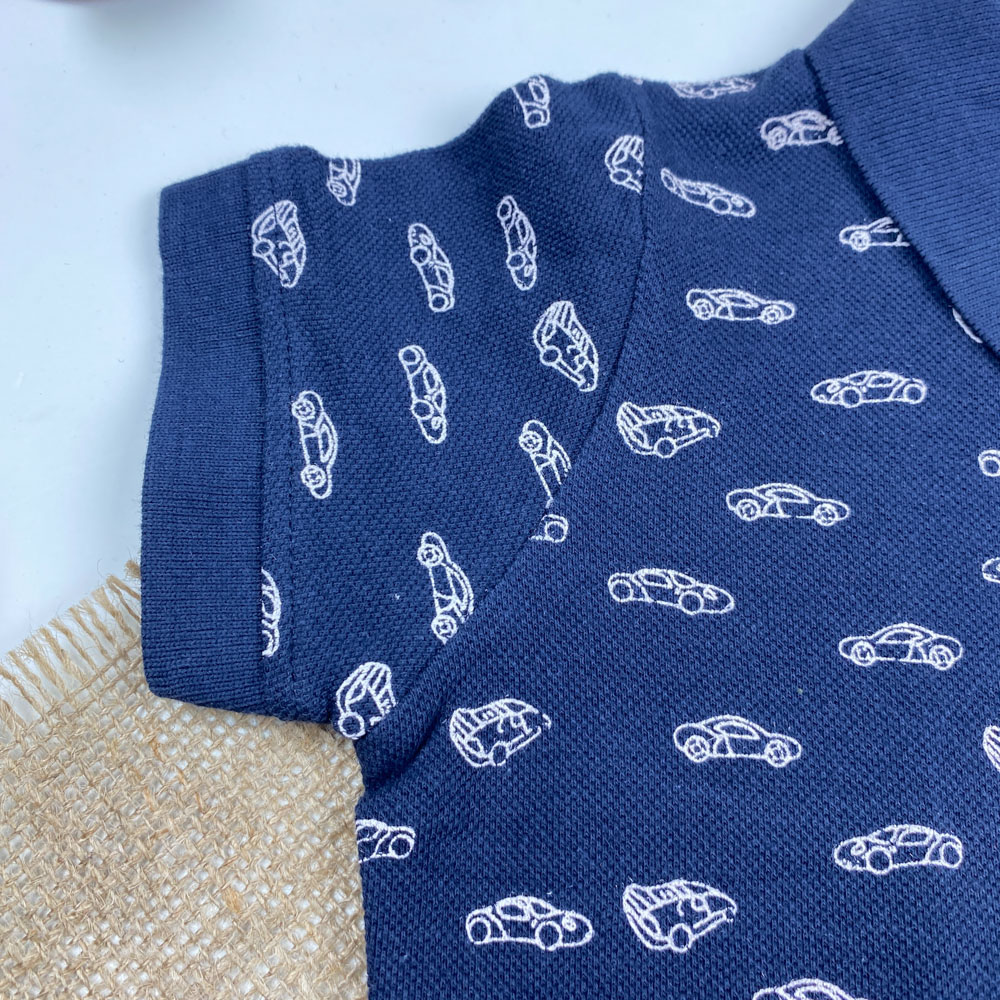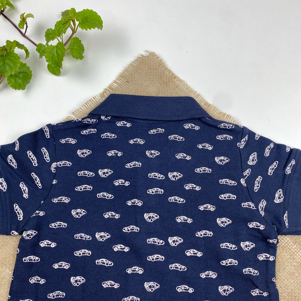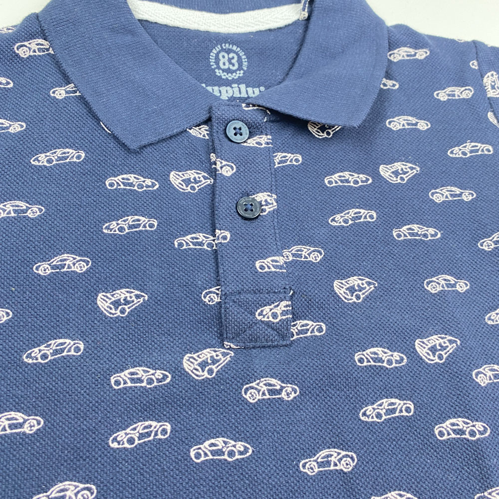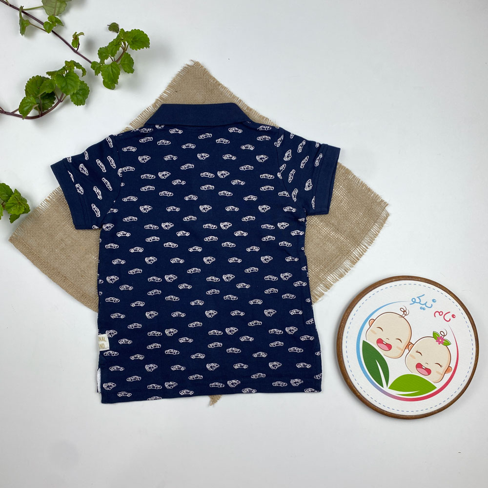 پولوشرت ( تیشرت یقه دار ) آستین کوتاه برند لوپیلو طرح ماشین دو دکمه سرمه ای رنگ