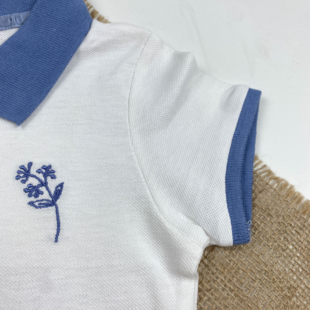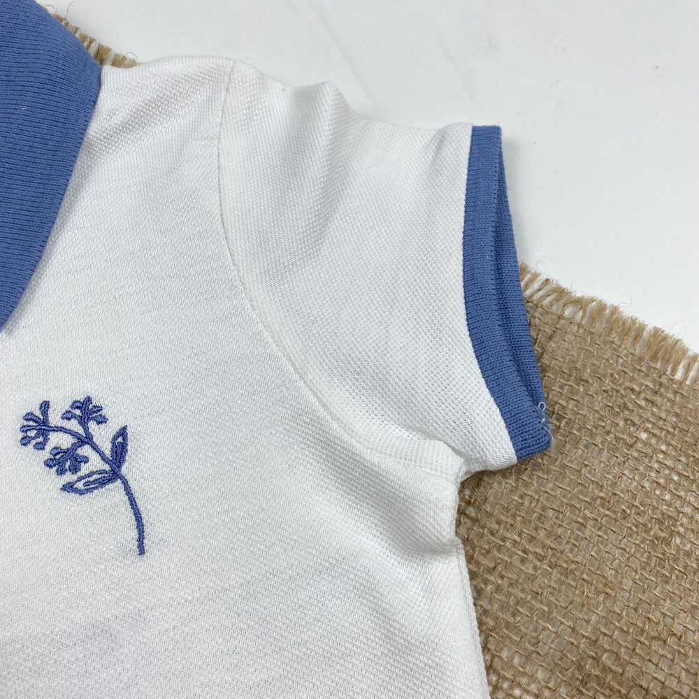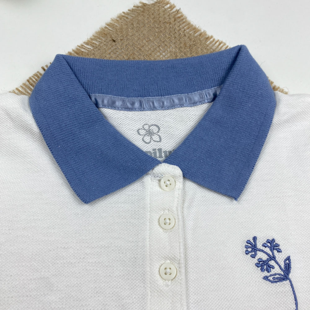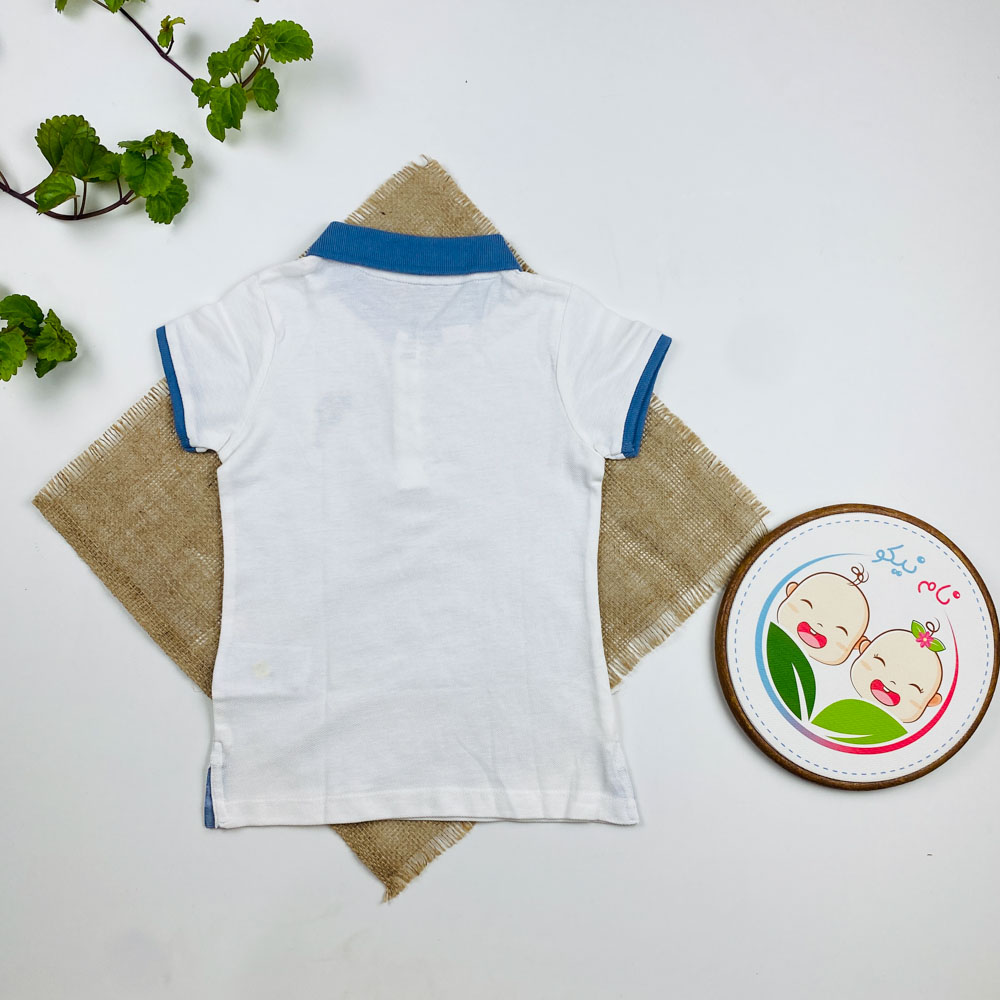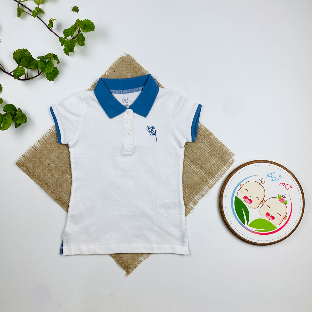 پولوشرت ( تیشرت یقه دار ) آستین کوتاه برند لوپیلو طرح گل دو دکمه سفید رنگ