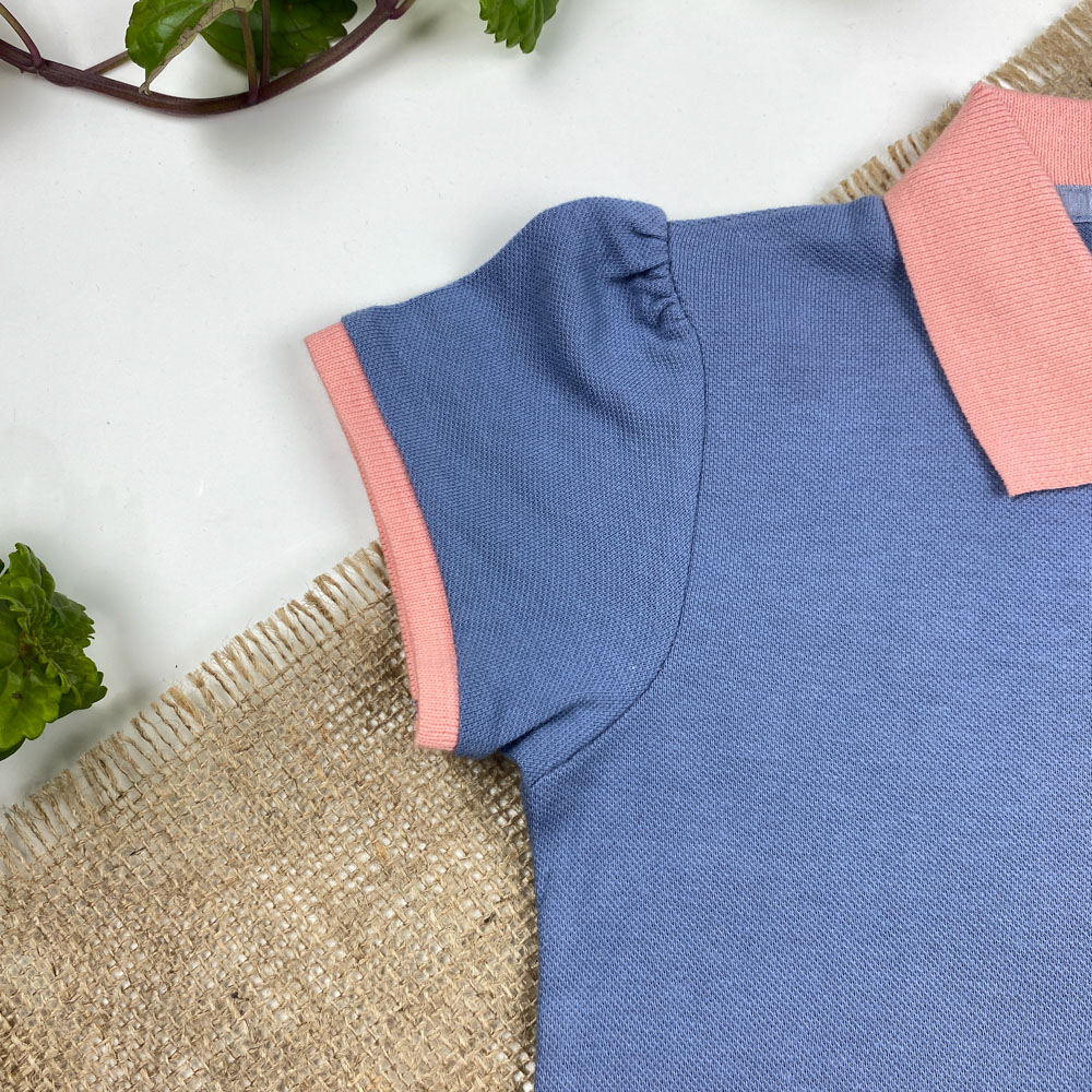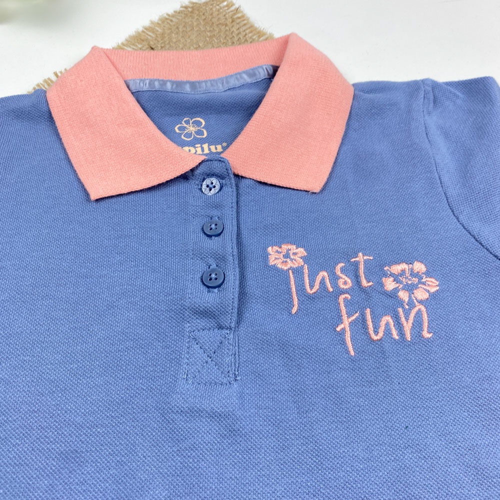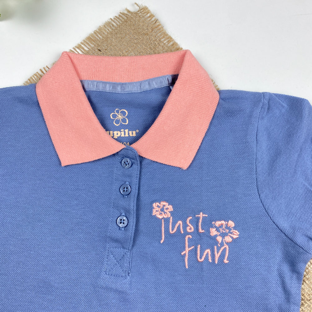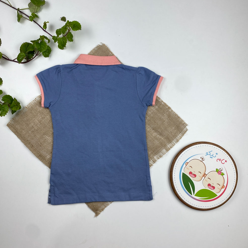 پولوشرت ( تیشرت یقه دار ) آستین کوتاه برند لوپیلو طرح گلدوزی شده دو دکمه آبی رنگ