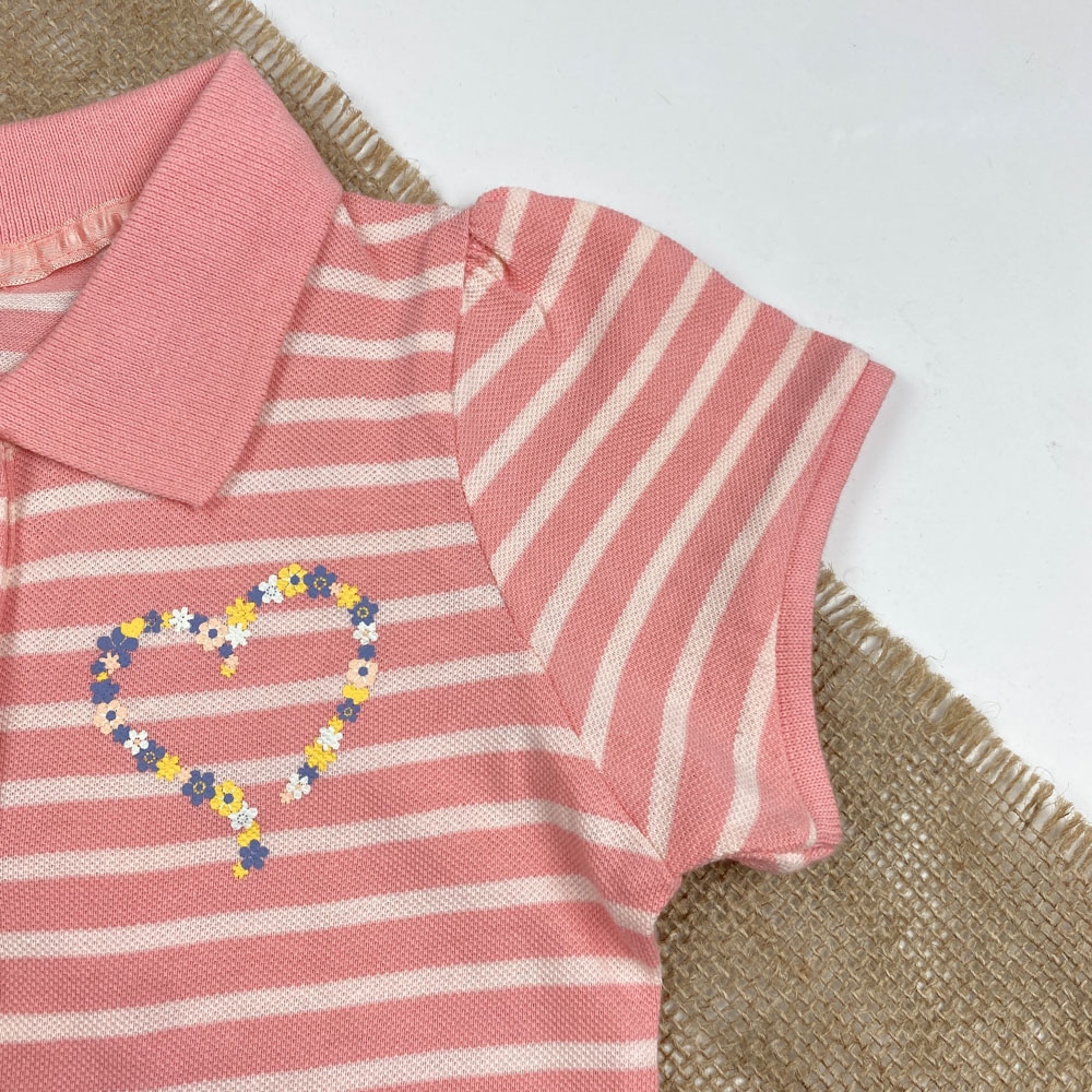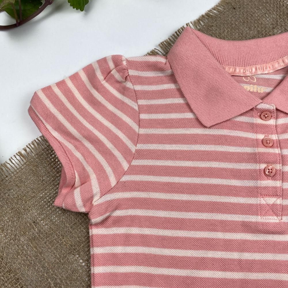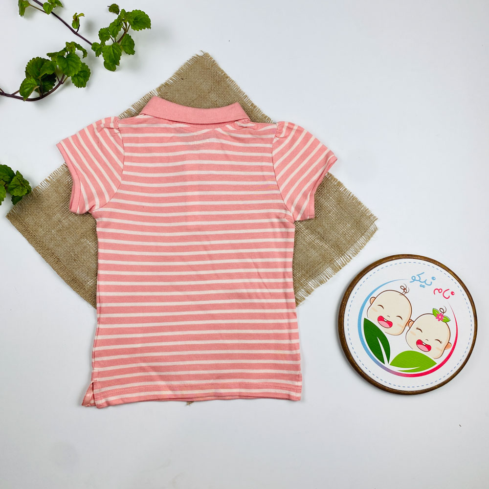 پولوشرت ( تیشرت یقه دار ) آستین کوتاه برند لوپیلو طرح گل راه راه دو دکمه صورتی رنگ