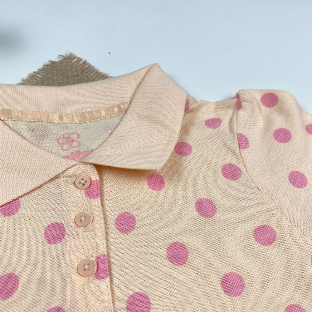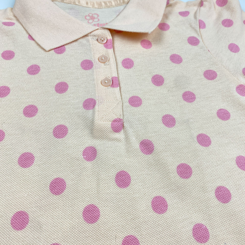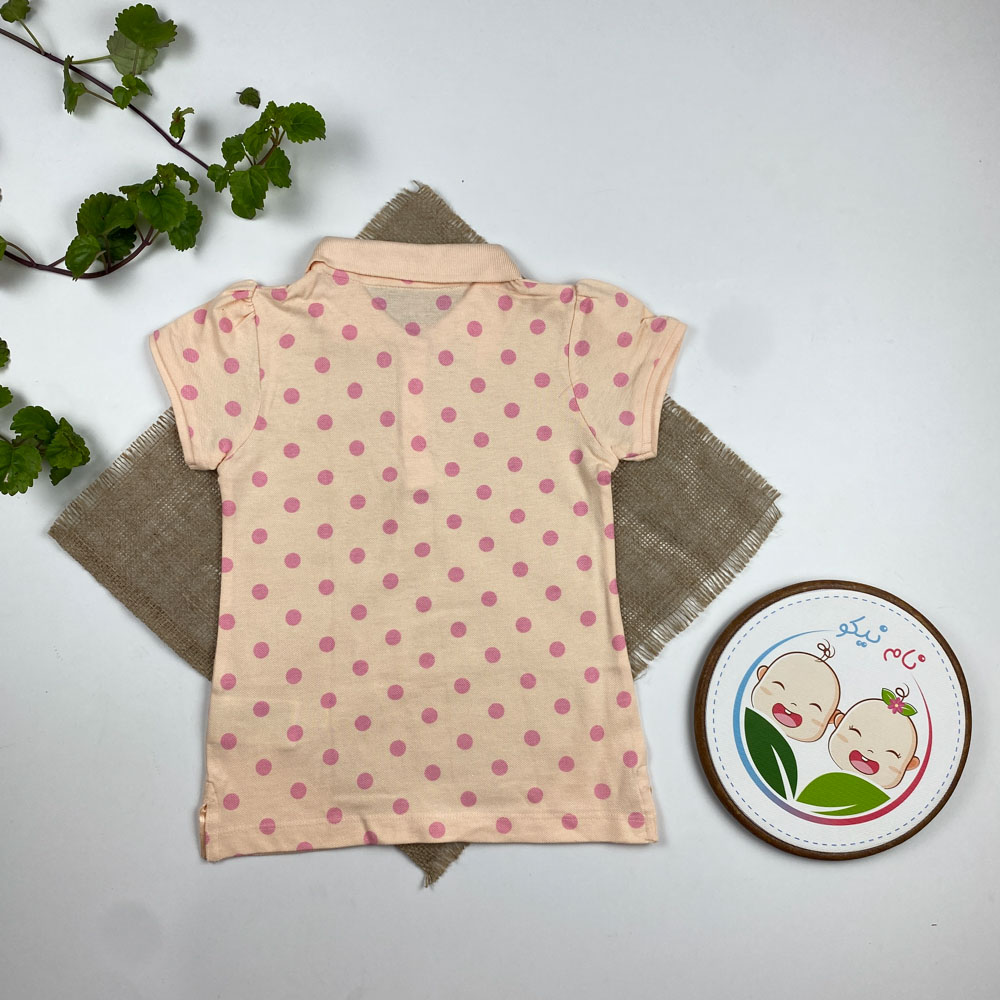 پولوشرت ( تیشرت یقه دار ) آستین کوتاه برند لوپیلو طرح توپ توپی دو دکمه گلبهی رنگ