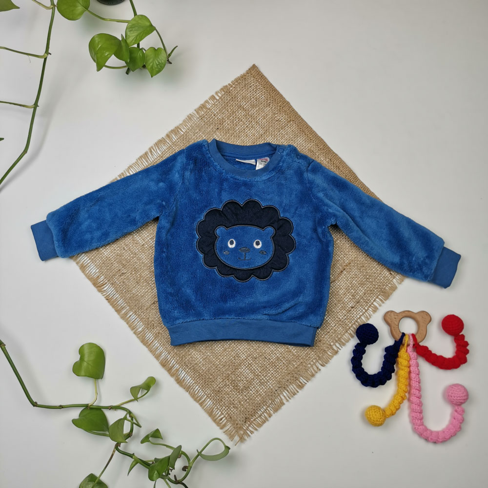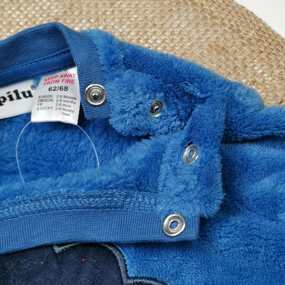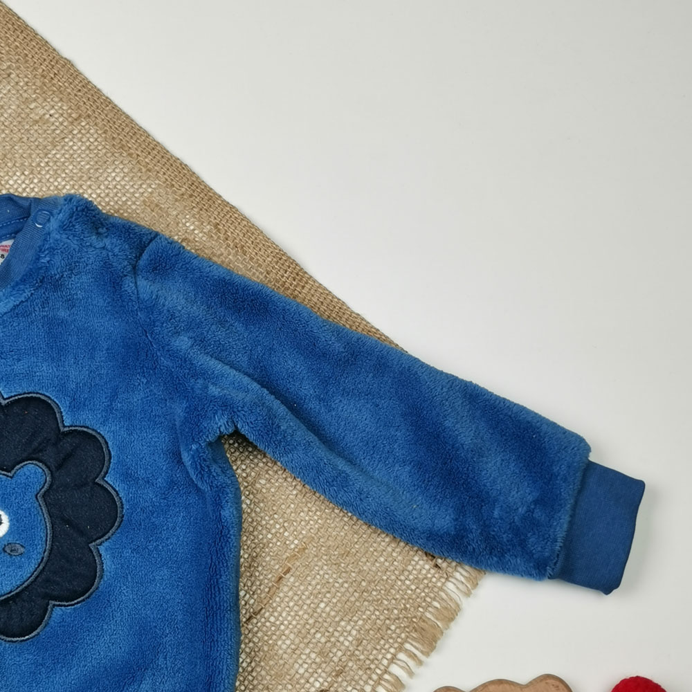 پیراهن توکرکی نوزادی آستین بلند برند لوپیلو طرح شیر آبی رنگ