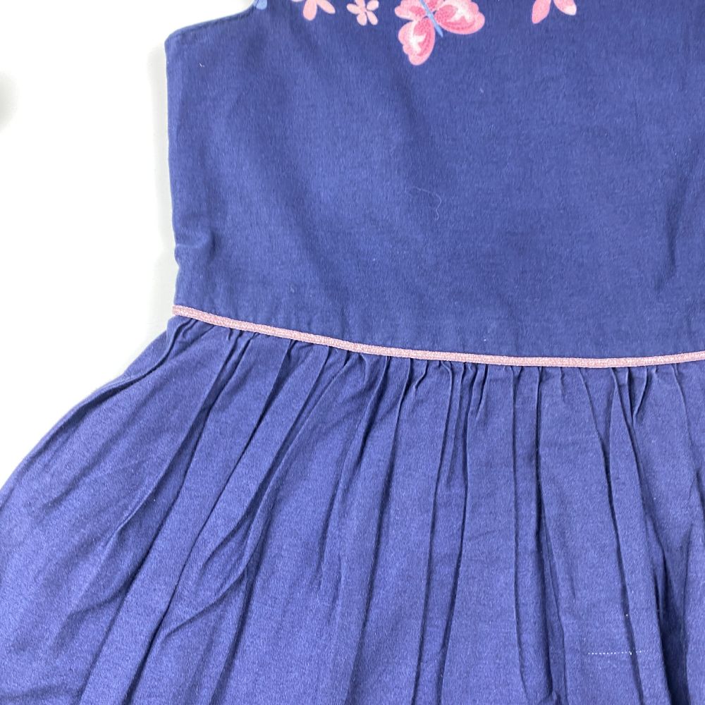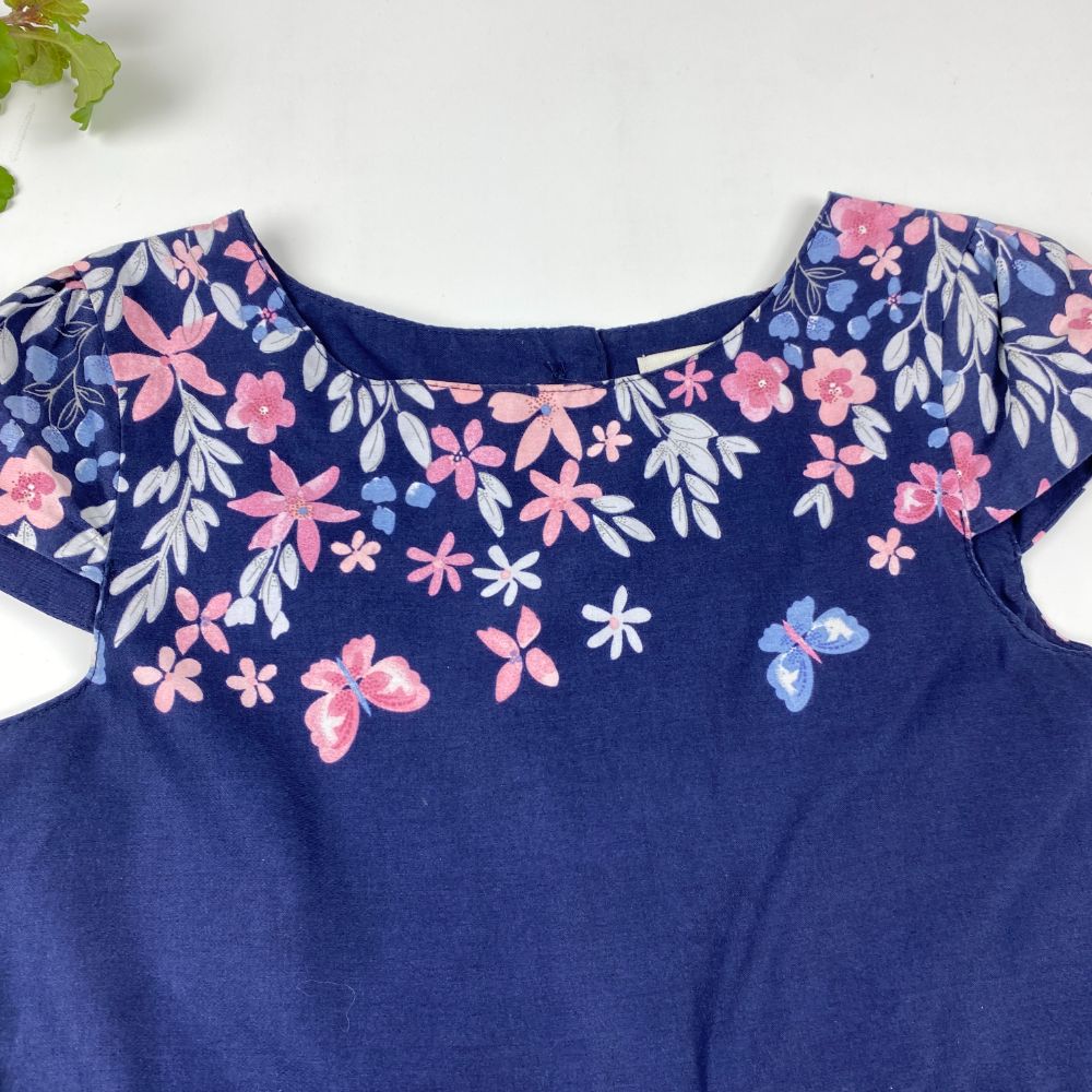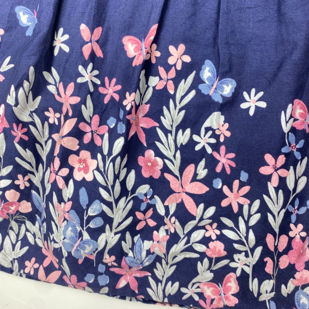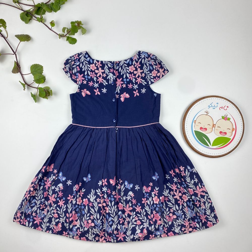 پیراهن دخترانه آستین حلقه ای طرح گل گلی یقه دلبری سرمه ای رنگ – 7 تا 8 سال