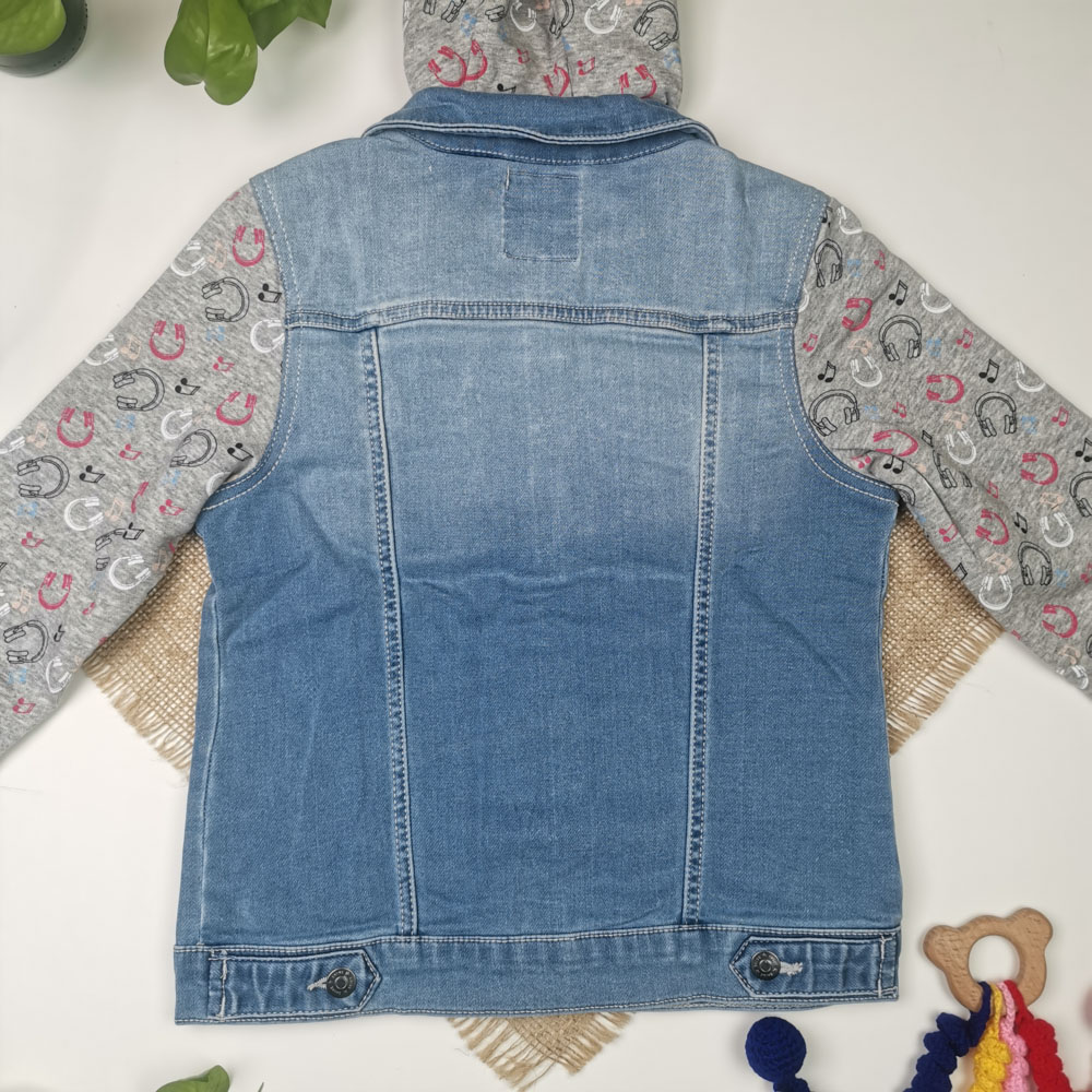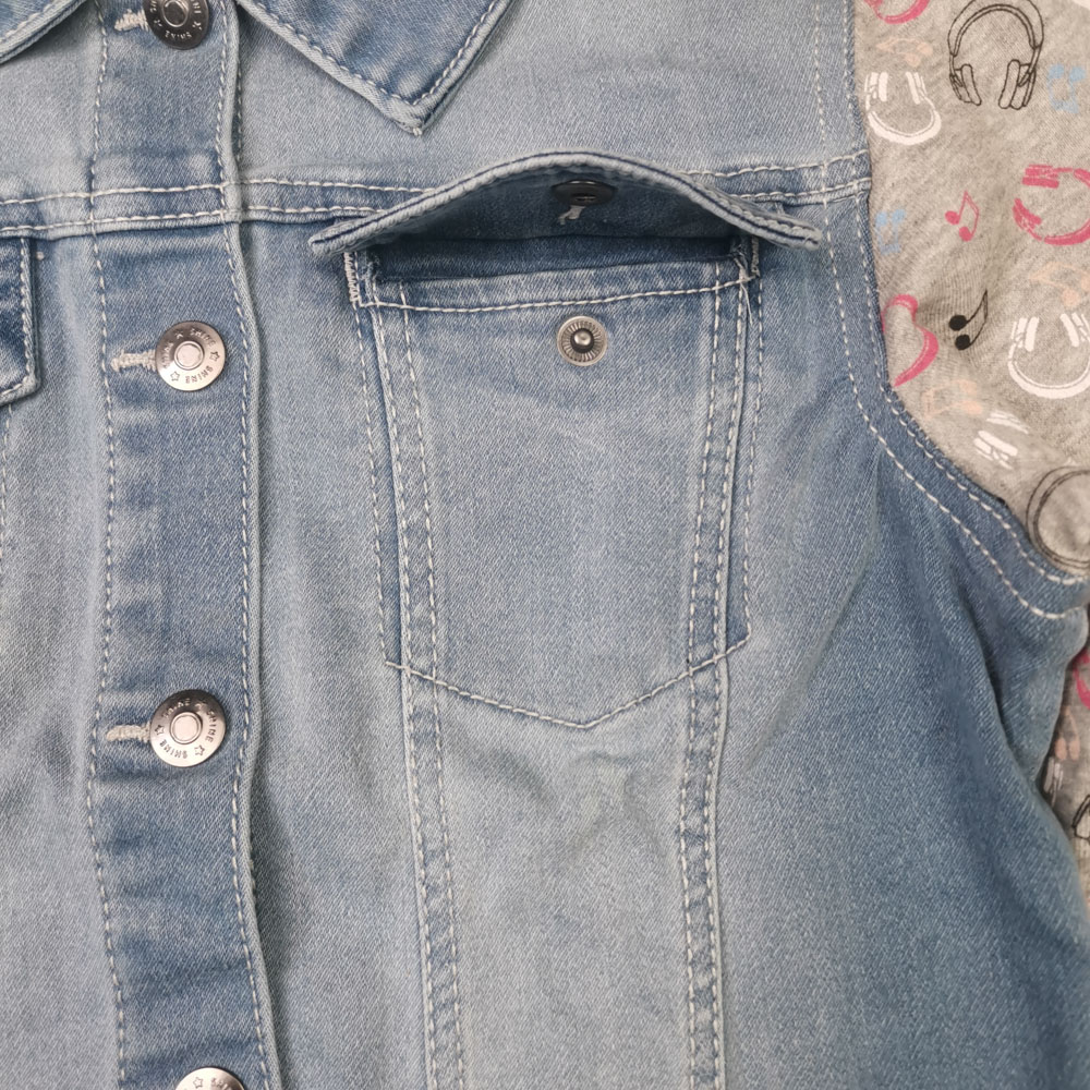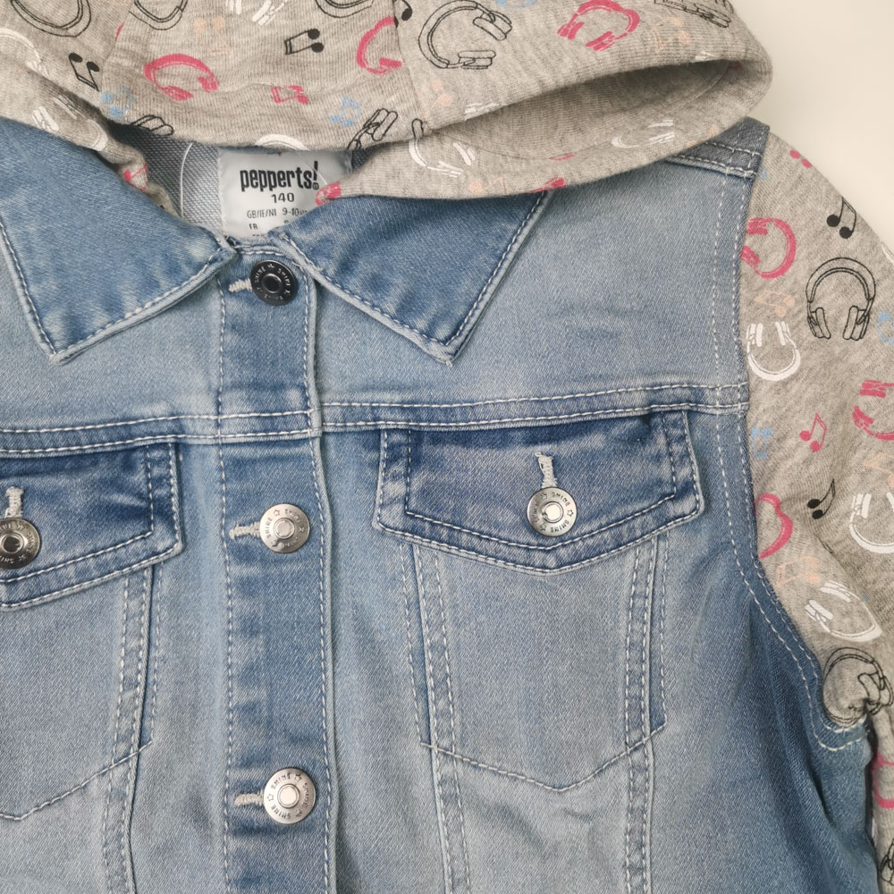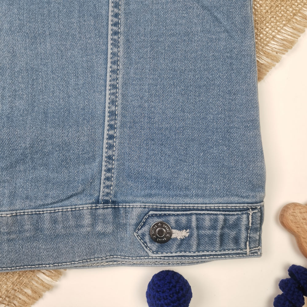 کت جین نوزادی دخترانه آستین بلند برند pepperts طرح موسیقی کلاه دار آبی رنگ