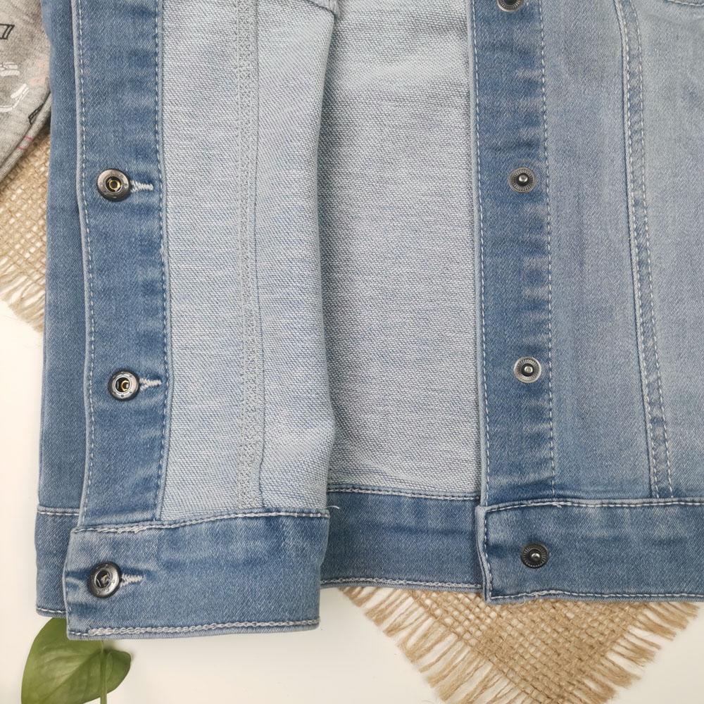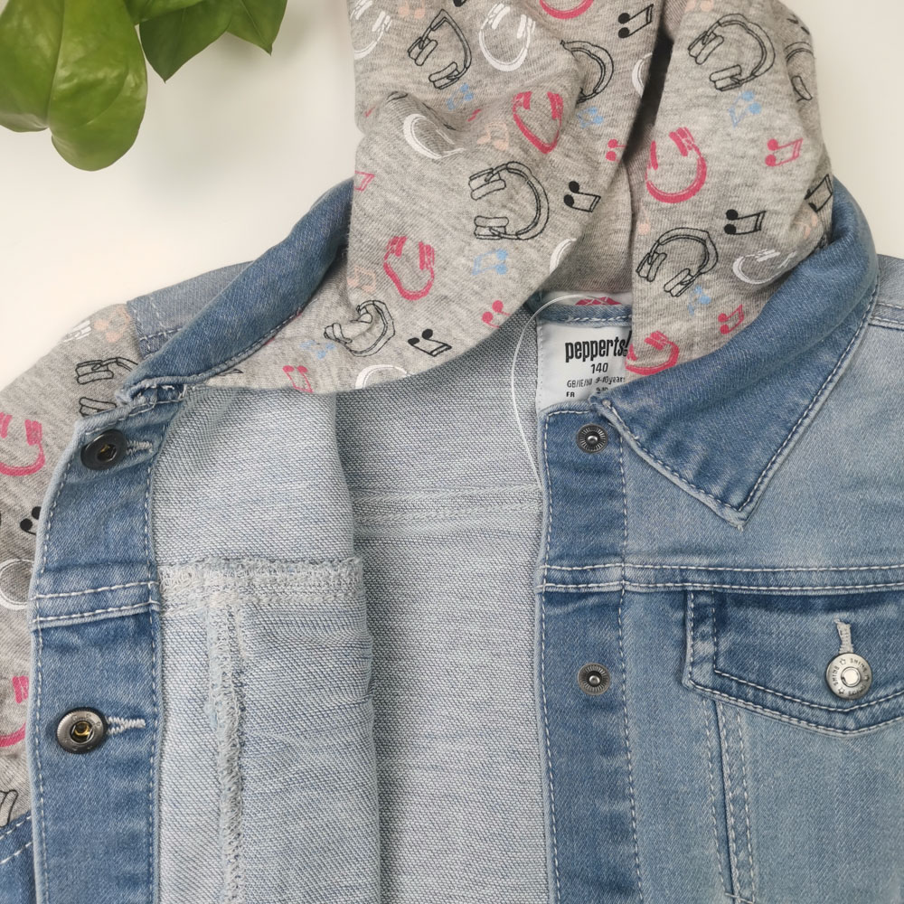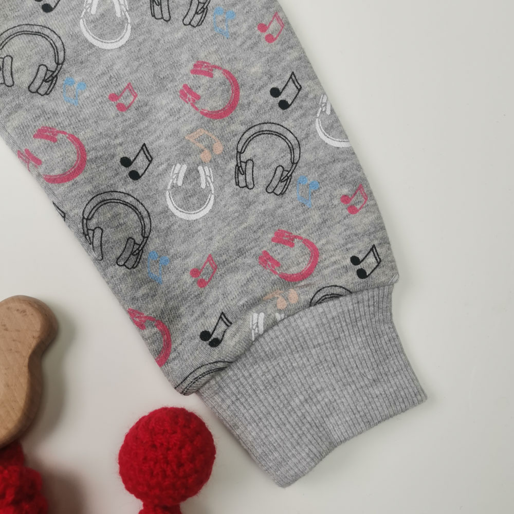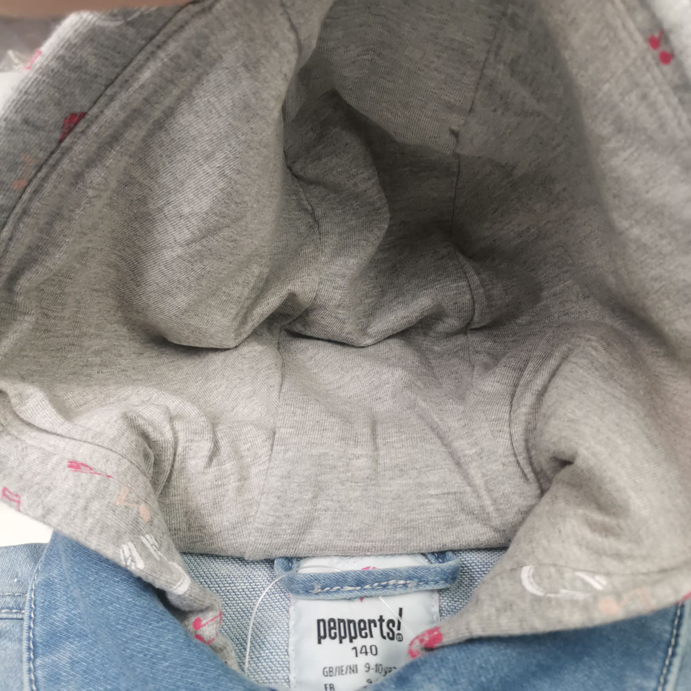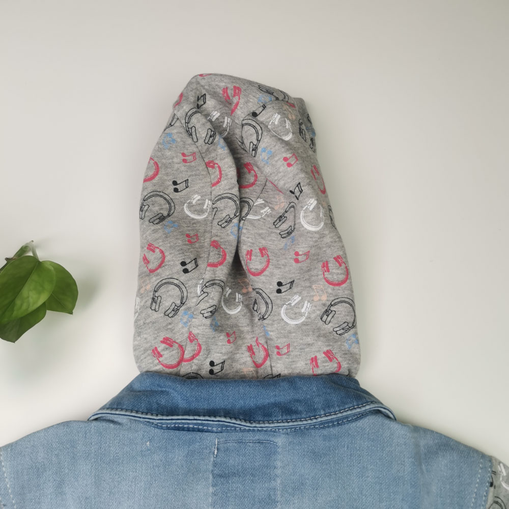 کت جین نوزادی دخترانه آستین بلند برند pepperts طرح موسیقی کلاه دار آبی رنگ