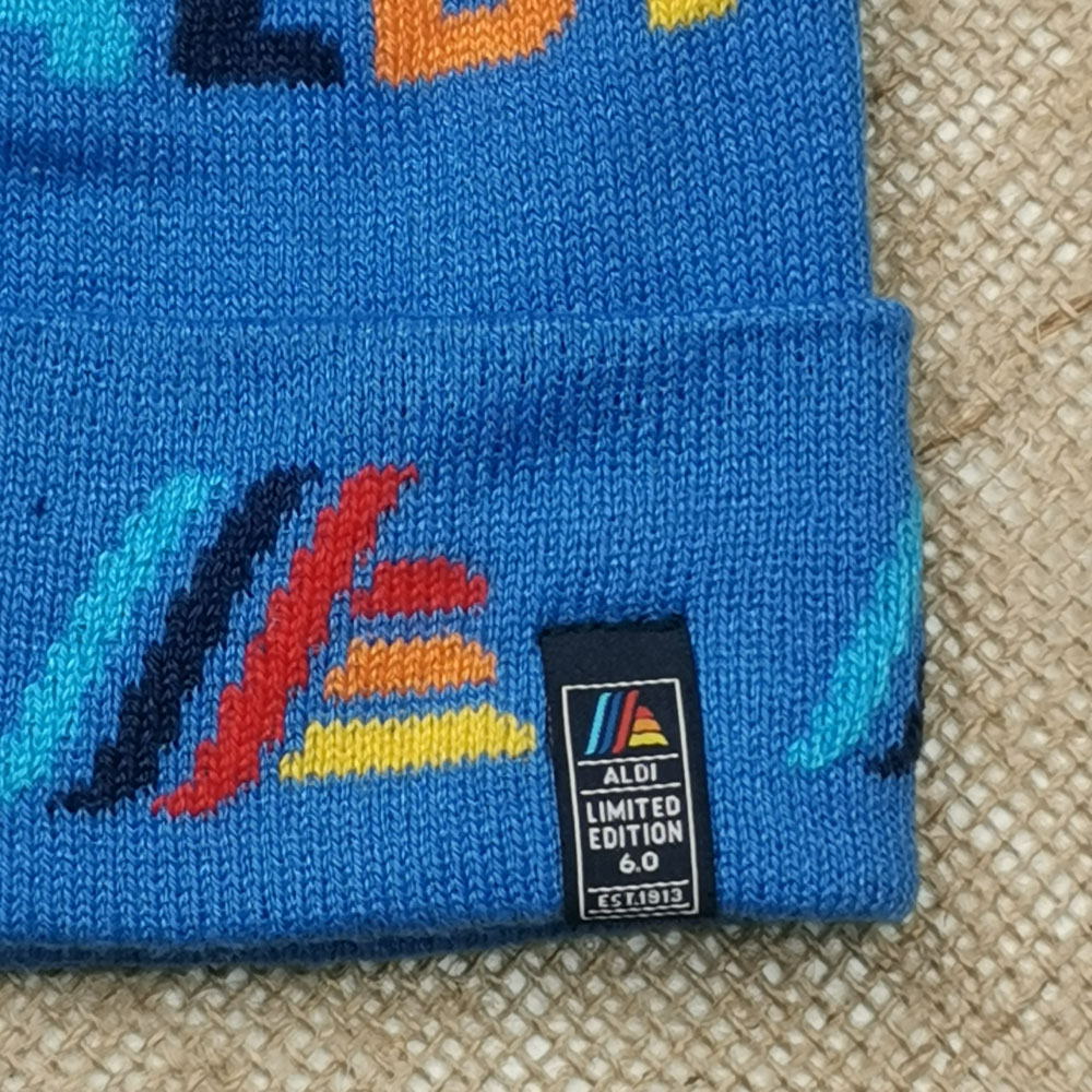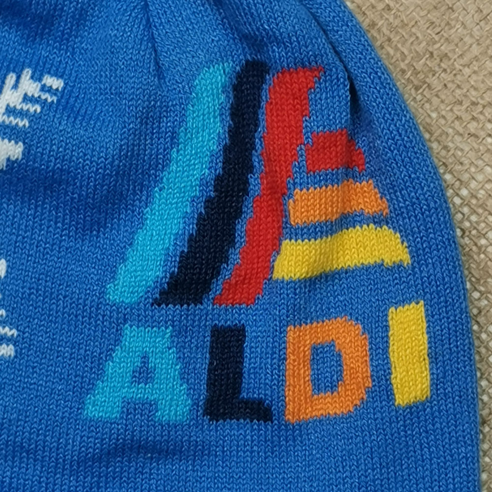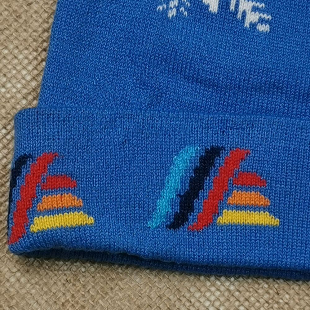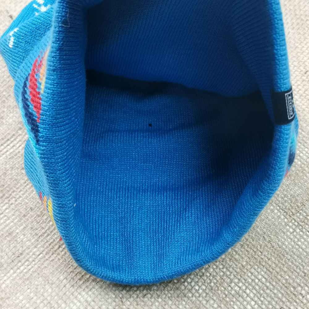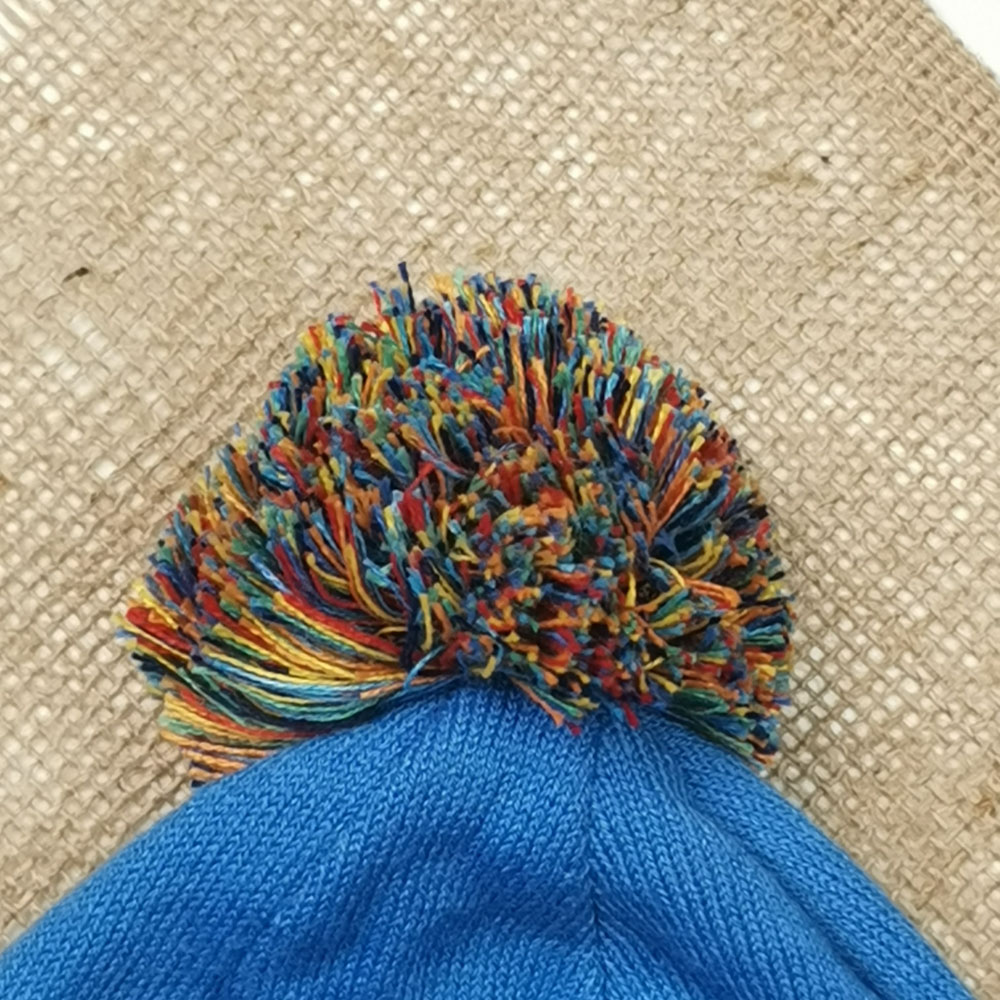 کلاه بافت دخترانه طرح نوشته دار توپکی آبی رنگ – فری سایز