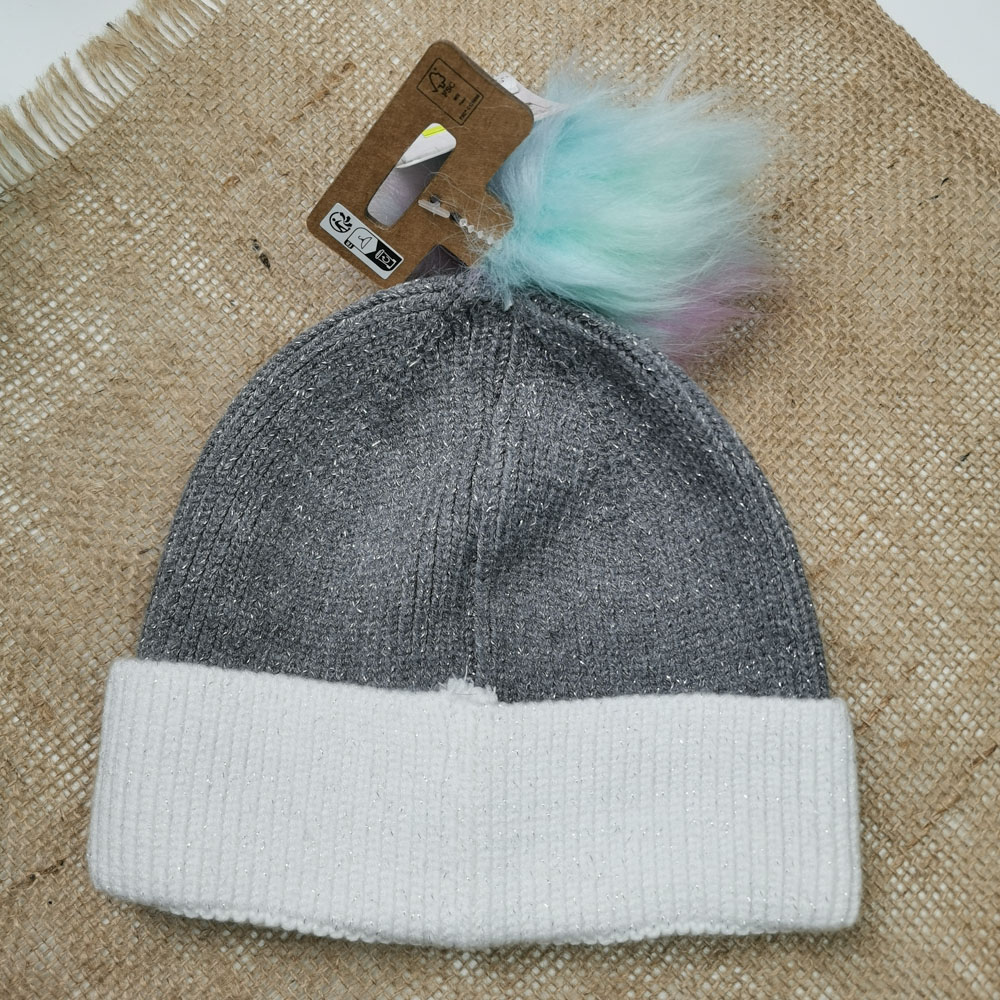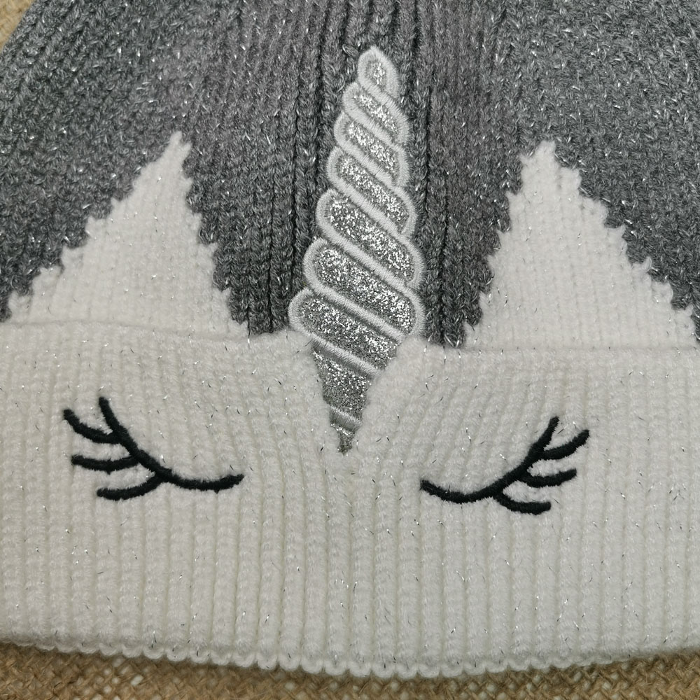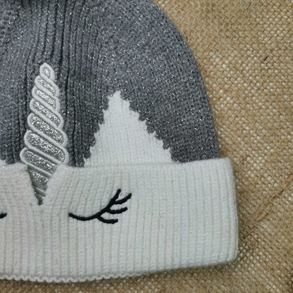 کلاه بافت دخترانه طرح یونیکورن طوسی رنگ – 4 تا 6 سال