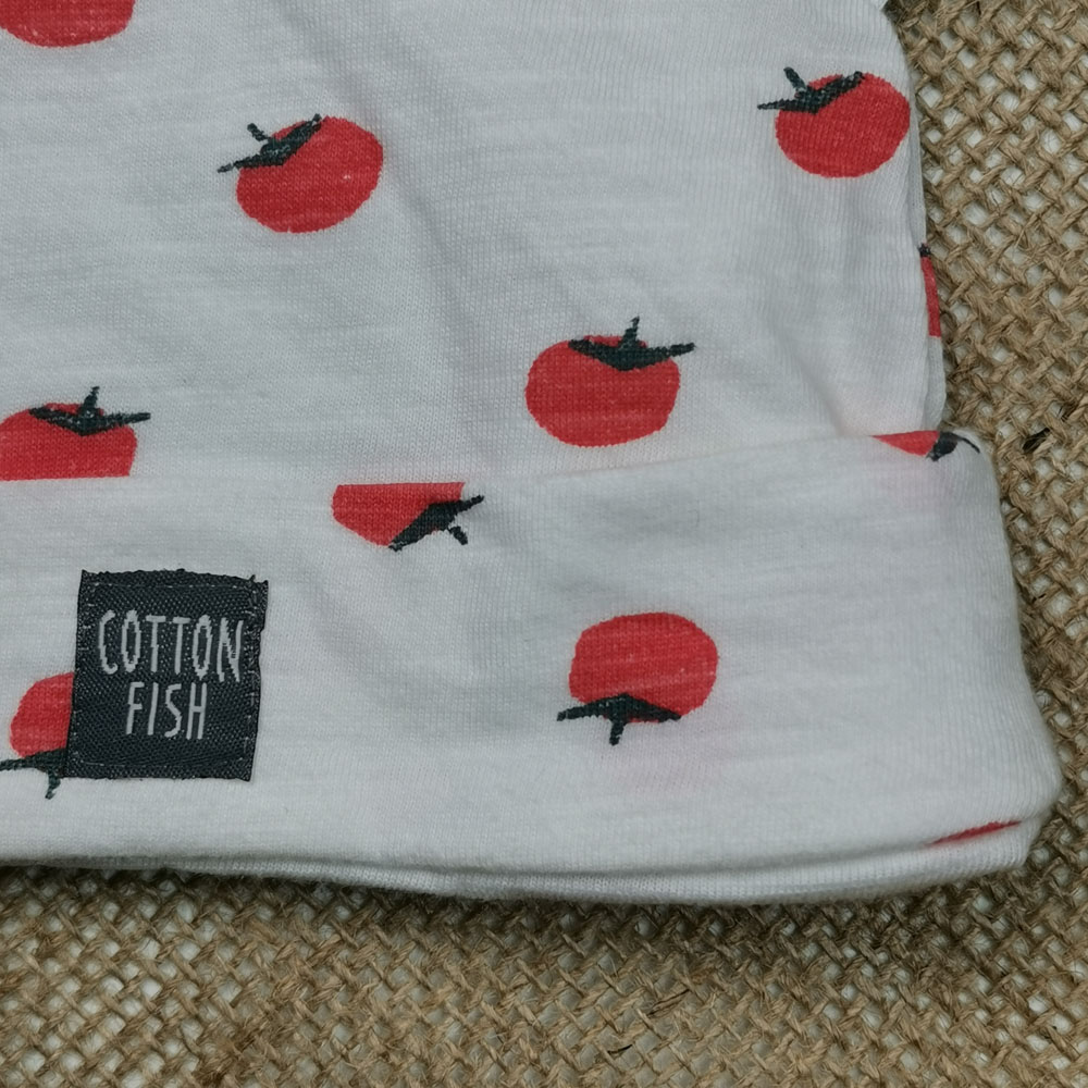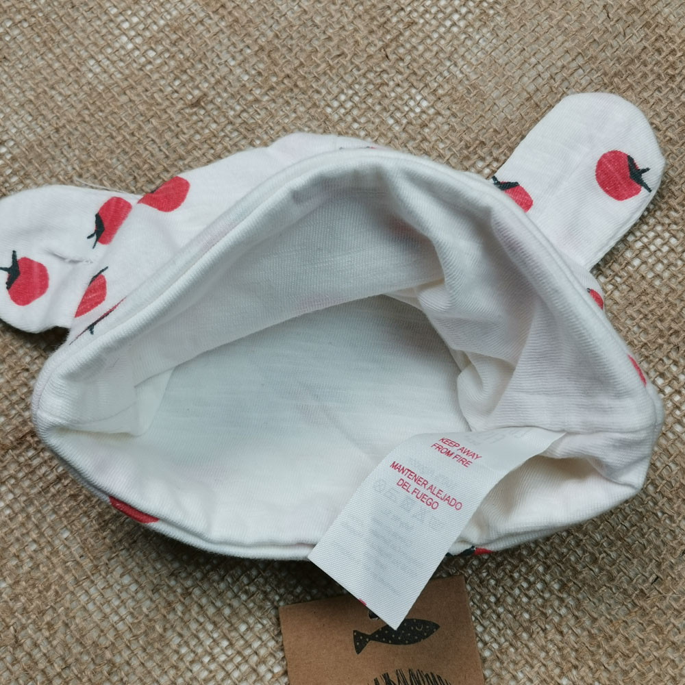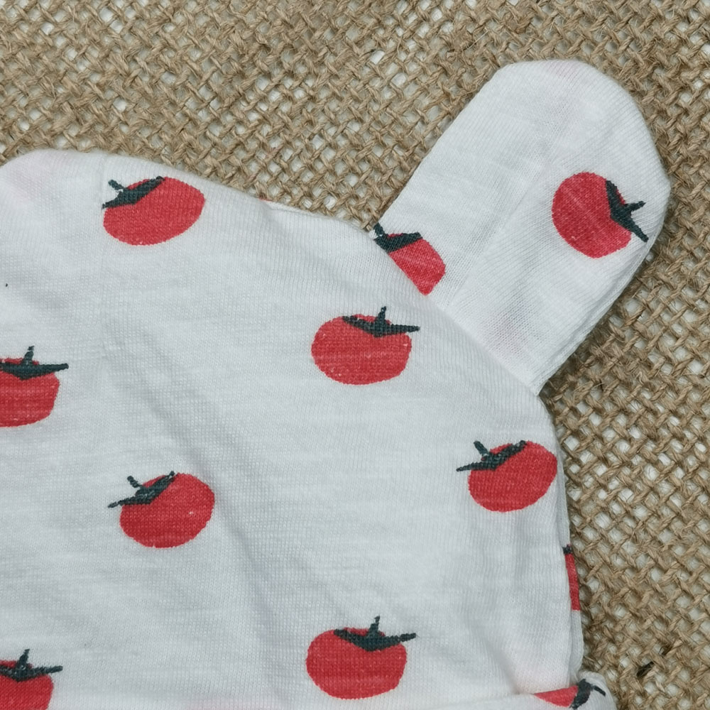 کلاه نوزادی نوزادی دخترانه طرح میوه گوش دار سفید رنگ – 0 تا 2 ماه