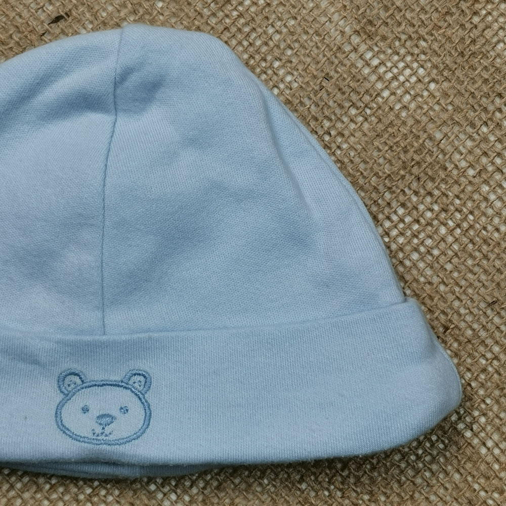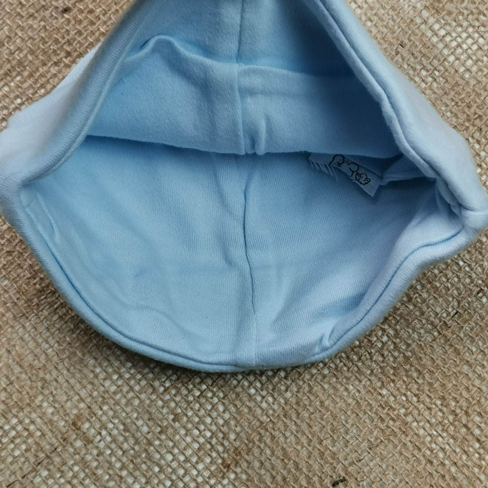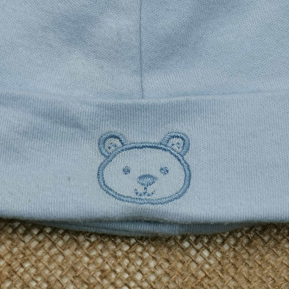 کلاه نوزادی نوزادی پسرانه طرح خرسی دو لایه آبی رنگ – 0 تا 2 ماه